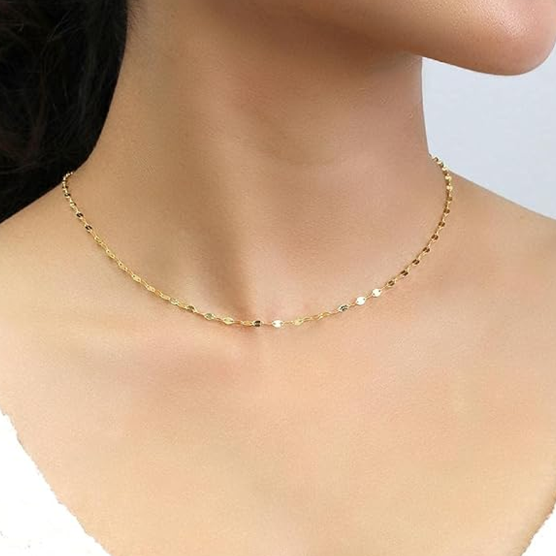 18K Gold Mirror Link Chain Necklace for Women