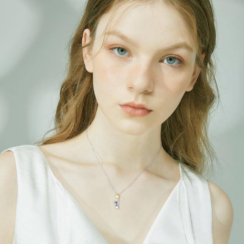 This pendant necklace is crafted from 14K gold, available in a two-tone silver and gold finish, featuring a Koala design without stones.