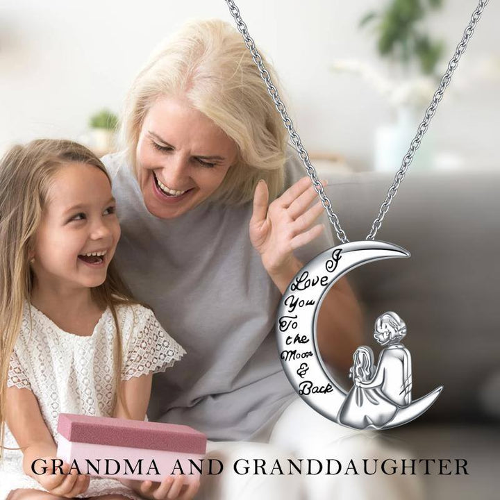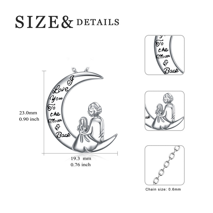 Sterling Silver Mother & Daughter Moon Engraved Necklace for Women