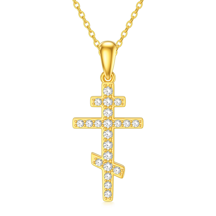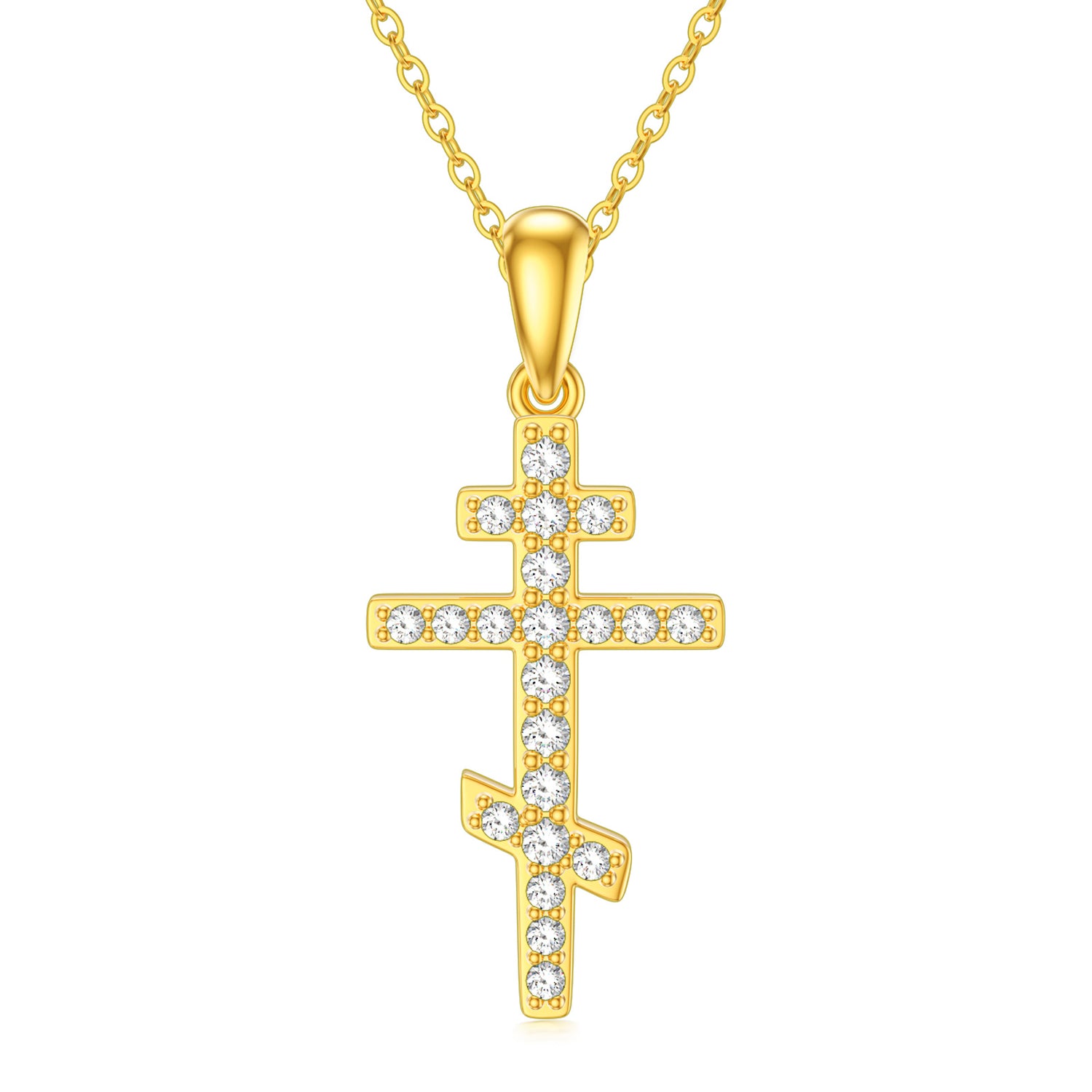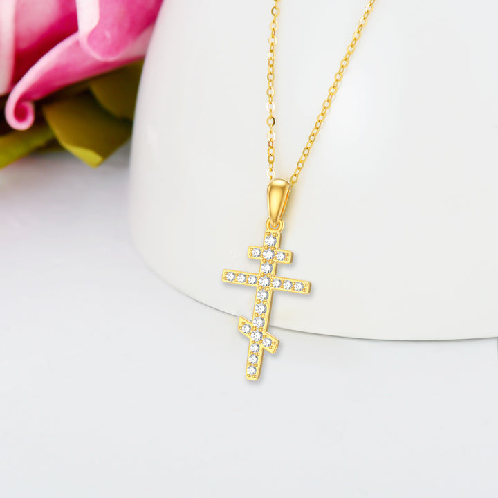 14K Gold Cubic Zirconia Cross Necklace for Women Men
