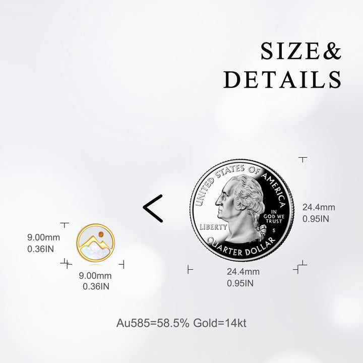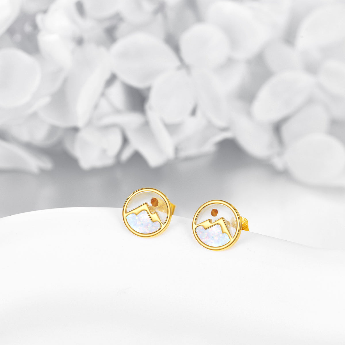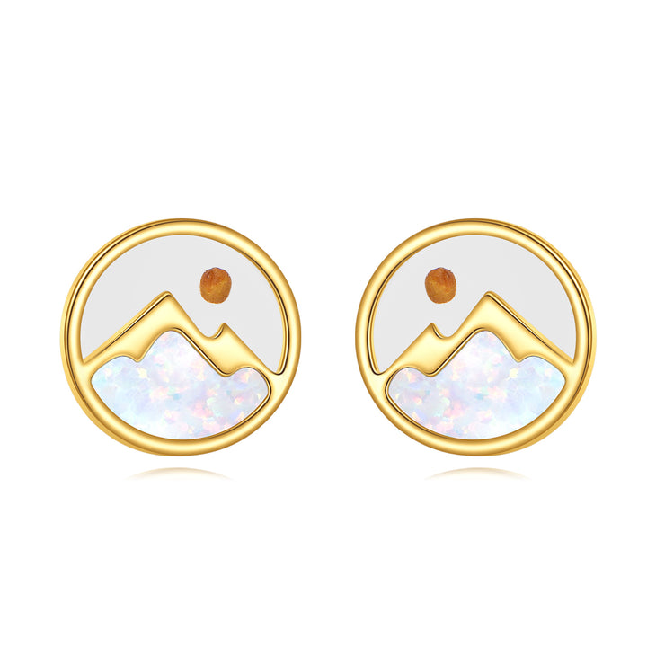 These stud earrings are crafted from 14K solid gold and feature mountain-inspired designs set with opal stones.
