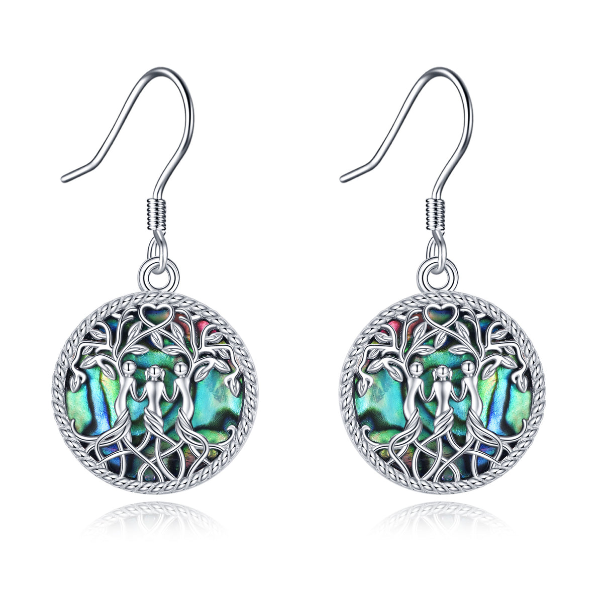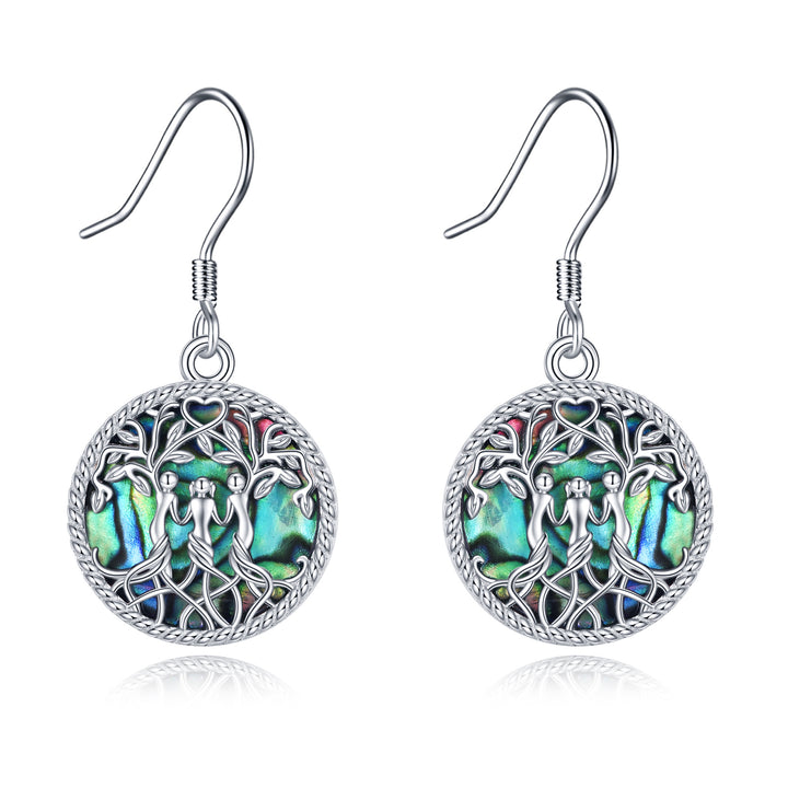 Sterling Silver Abalone Shellfish Tree Of Life Sisters Drop Earrings for Women