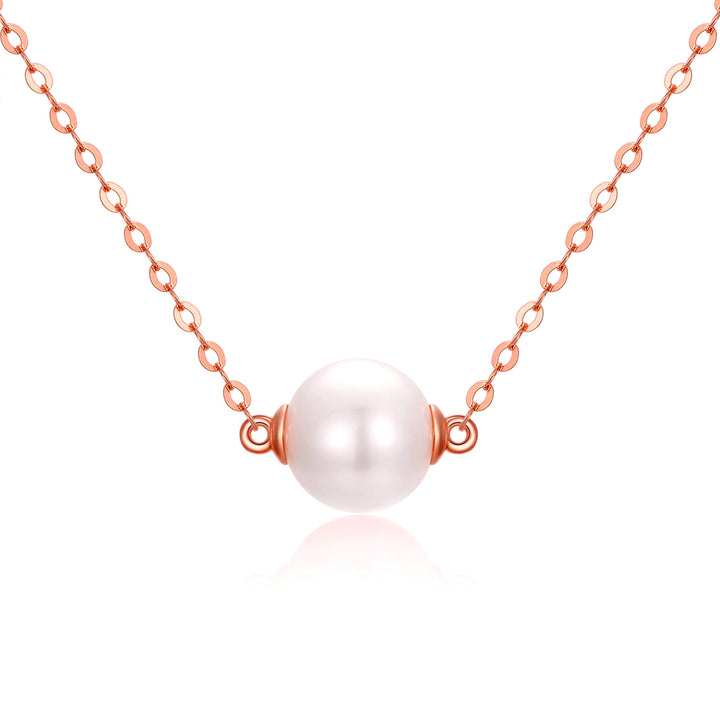 This pendant necklace is crafted from Solid 14K Rose Gold and features a single, perfectly round, lustrous Pearl.