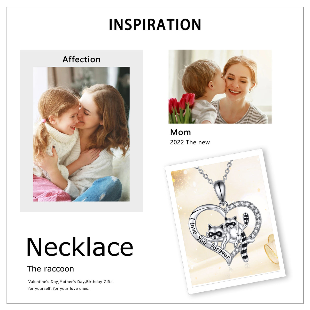 This Sterling Silver Round Zircon Raccoon & Heart Pendant Necklace by YFN elevates style with a whimsical yet sentimental design. The sterling silver pendant, white gold plated for durability and shine, features a round, clear Zircon that reflects light brilliantly. The adorable raccoon design adds a unique touch, while the heartfelt "I Love You Forever" engraving makes this piece an ideal gift for women who treasure elegance and profound sentimentality.