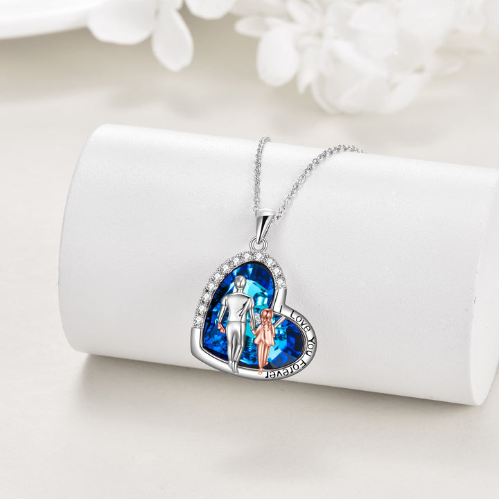 This Sterling Silver Father & Daughter Crystal Necklace by YFN celebrates an enduring bond through a heart-shaped blue crystal surrounded by silver and rose gold detailing. The inscription "I Love You Forever" enhances the emotional significance, creating a heartfelt piece for women that honours a cherished connection.