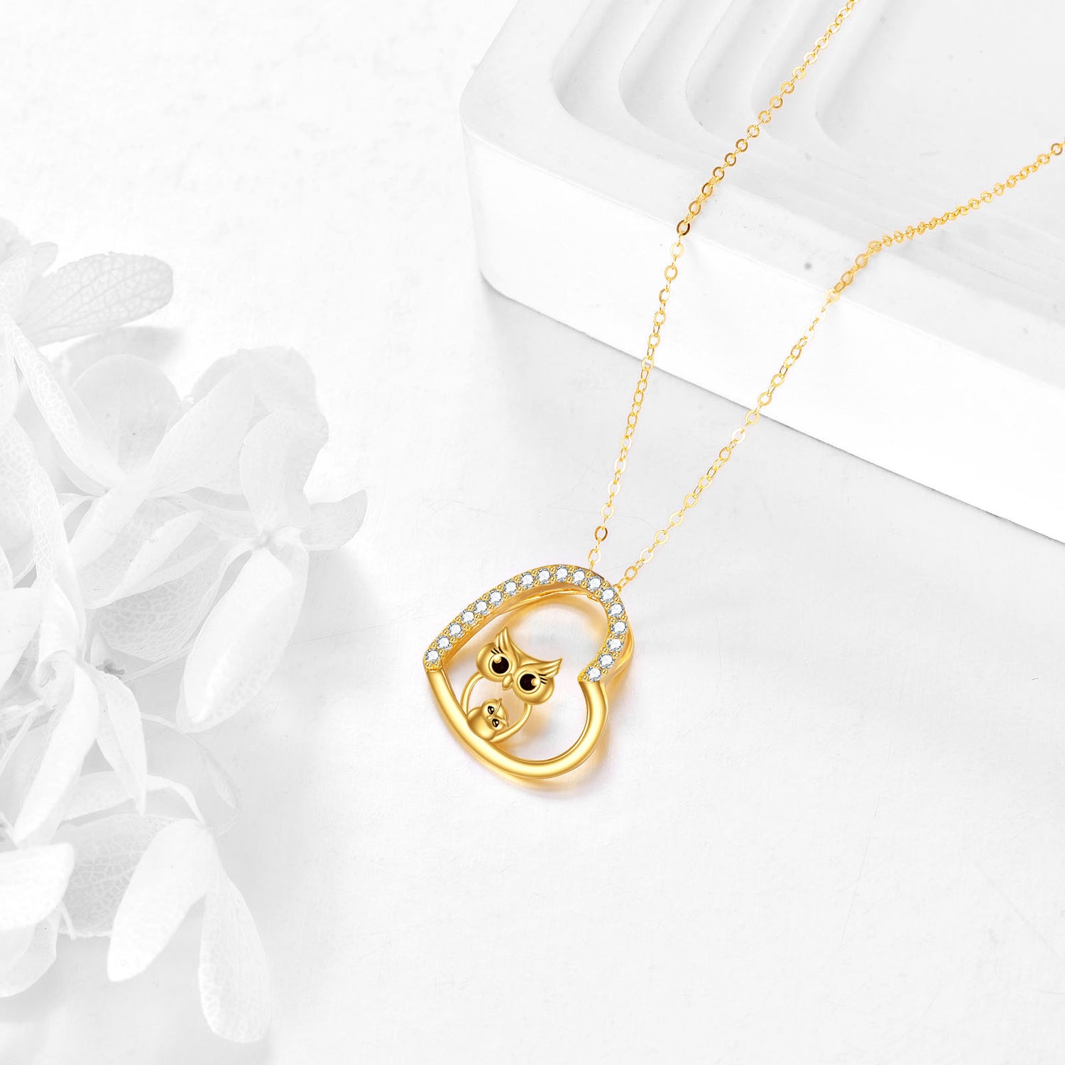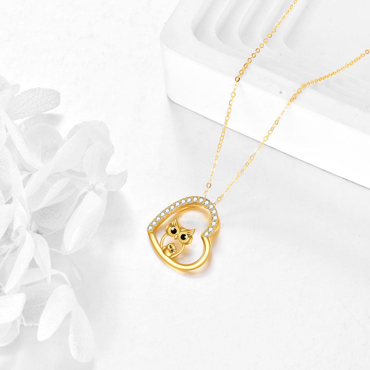 14K Gold Cubic Zirconia Owl & Heart Pendant Necklace