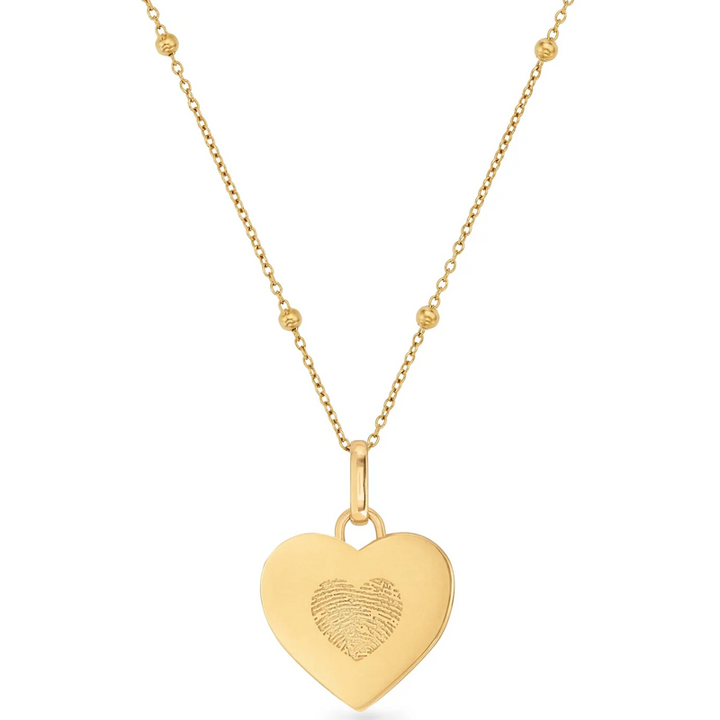 14K Gold Personalized Engraving Fingerprint Heart Necklace for Women