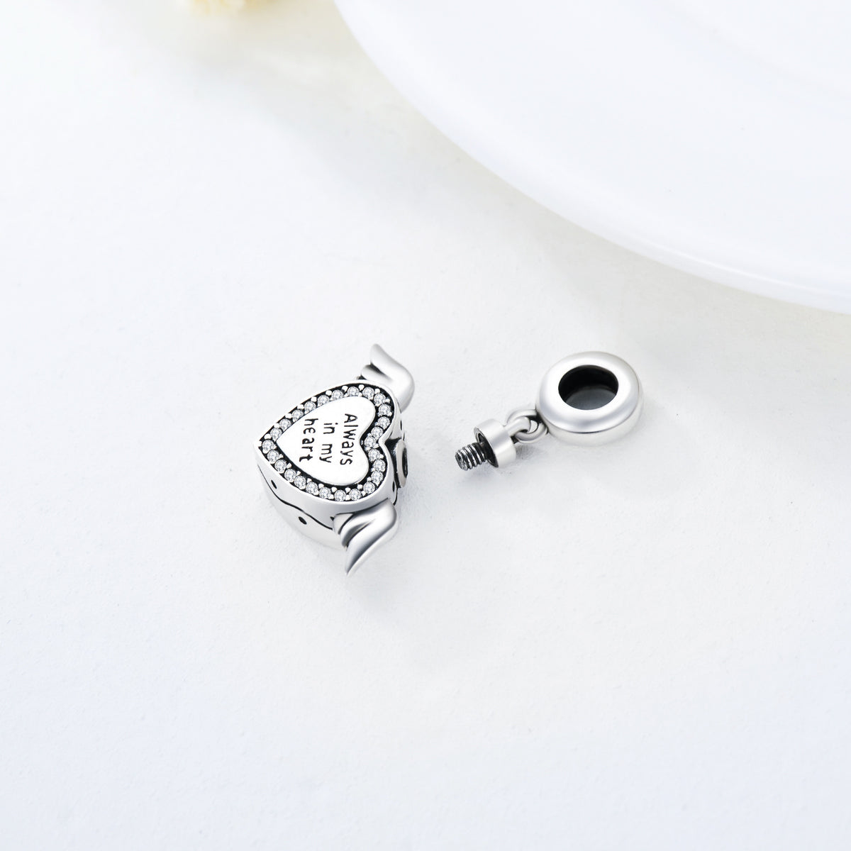 This Sterling Silver Round Cubic Zirconia Angel Wing & Heart Dangle Charm with Engraved Word by YFN brings emotional resonance to elegant design through its sparkling cubic zirconia accents and delicate angel wing motif. Representing protection, love, and remembrance, the charm’s retro-silver finish enhances its vintage allure. The engraved phrase “Always In My Heart” adds heartfelt depth, making it a cherished keepsake for women who appreciate meaningful jewelry. Designed to complement charm bracelets or necklaces, this piece blends dazzling sparkle with touching sentiment in a beautifully crafted style.