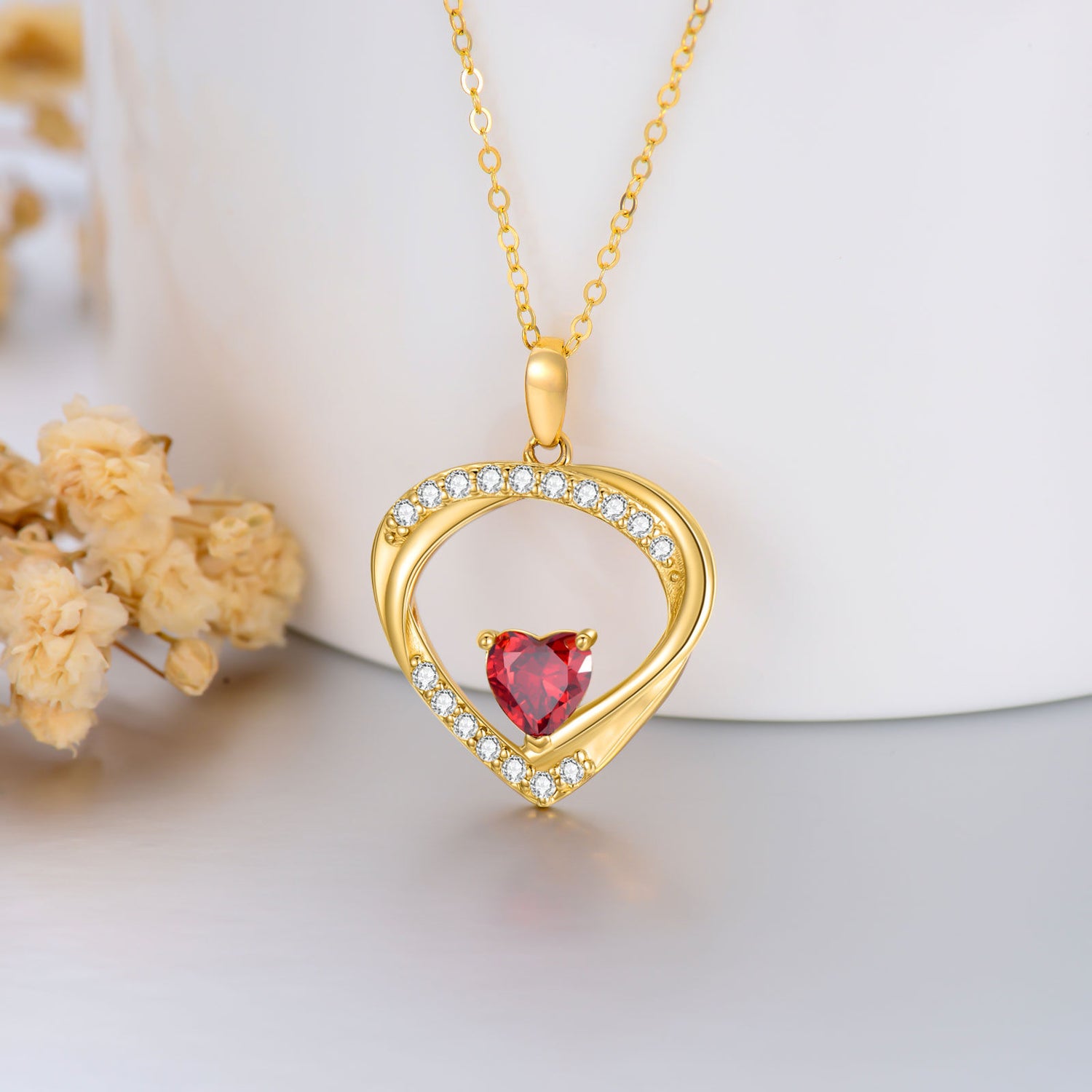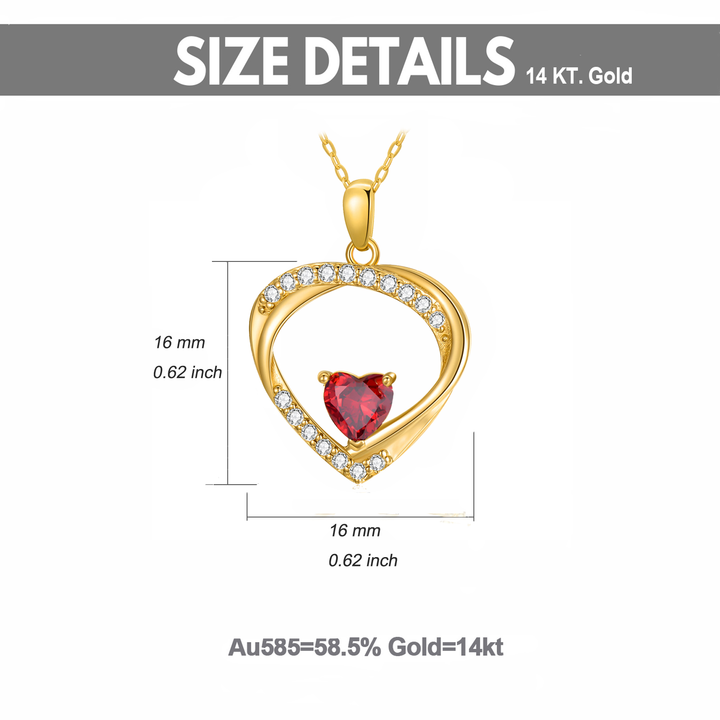 14K Gold Heart Cubic Zirconia Pendant Necklace For Women