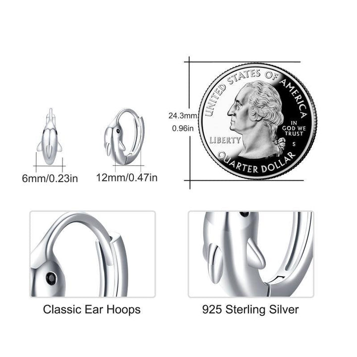 Crafted from premium Sterling Silver and finished with a lustrous White Gold Plating, these Hoop Earrings feature an enchanting Dolphin motif.