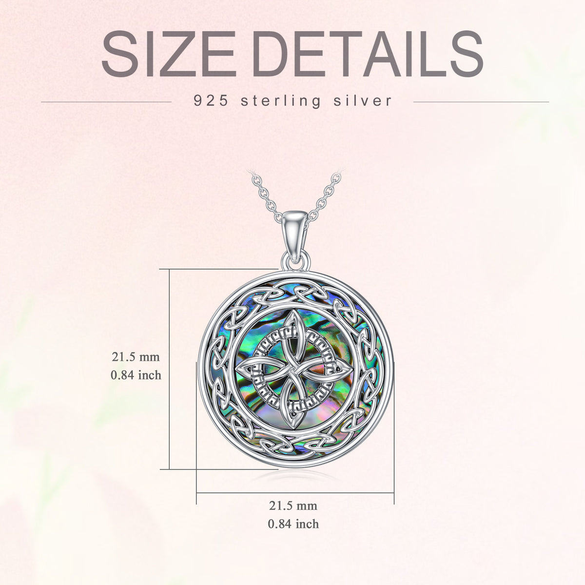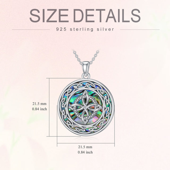 Sterling Silver Circular Shaped Abalone Shellfish Celtic Knot & Witch Knot Pendant Necklace
