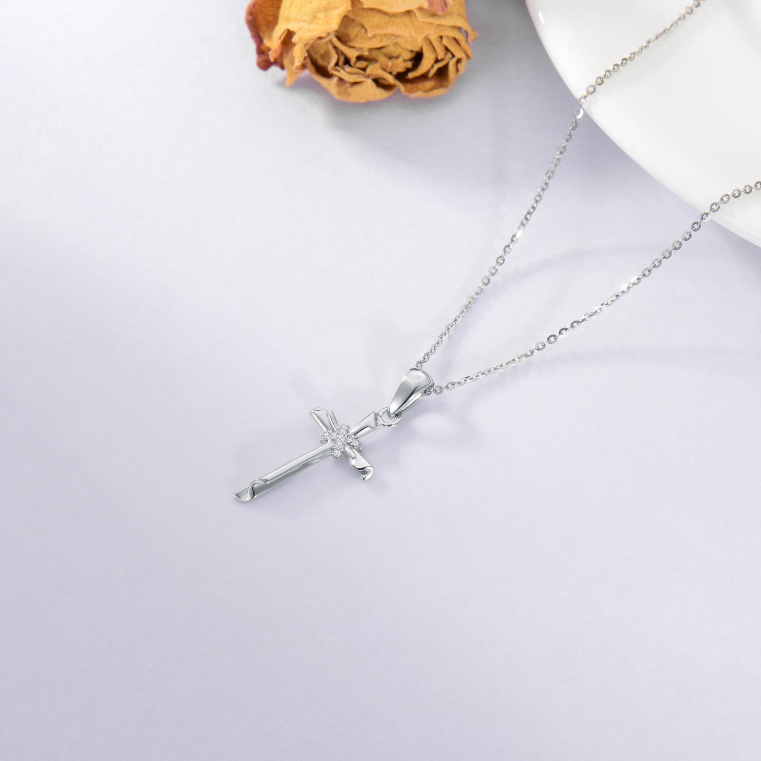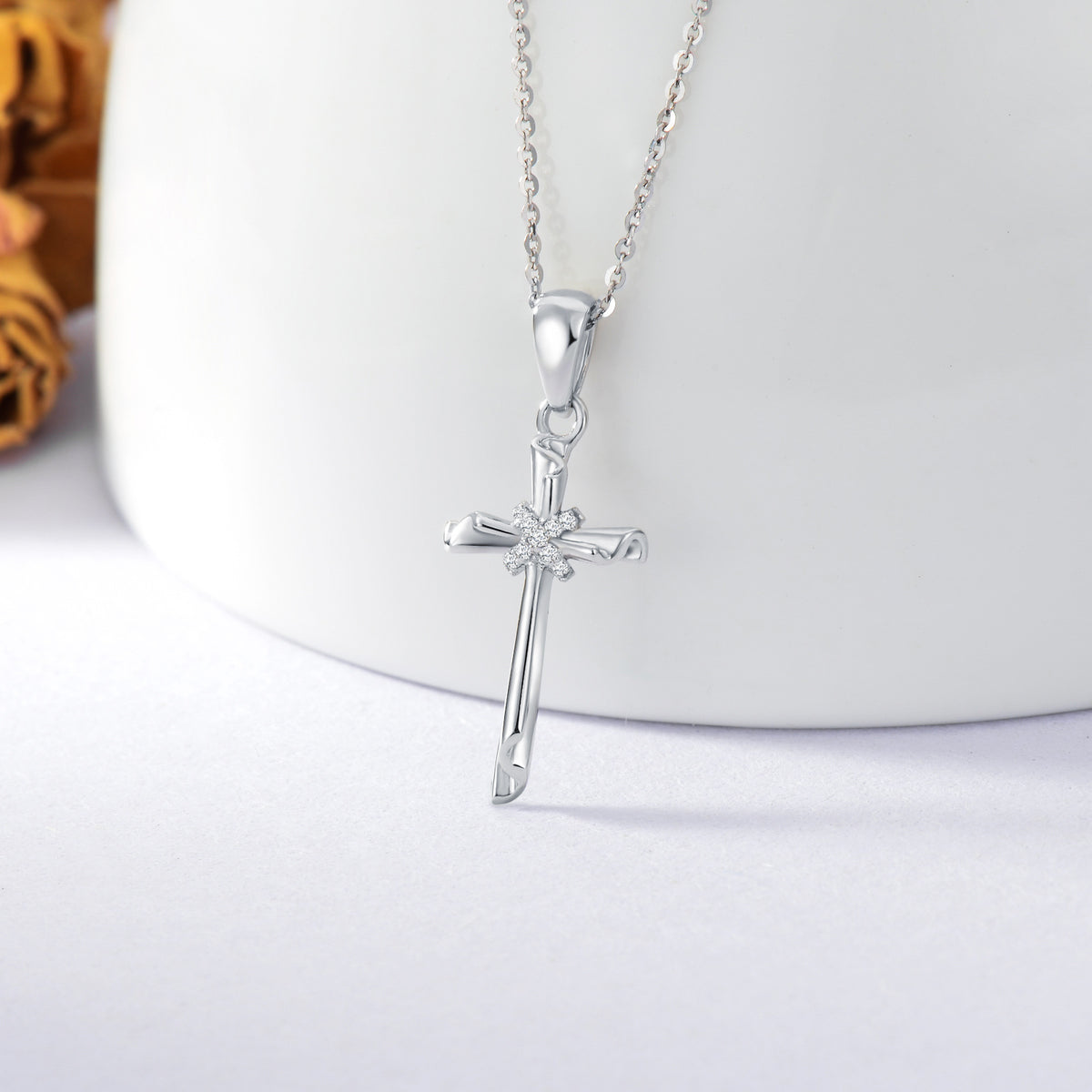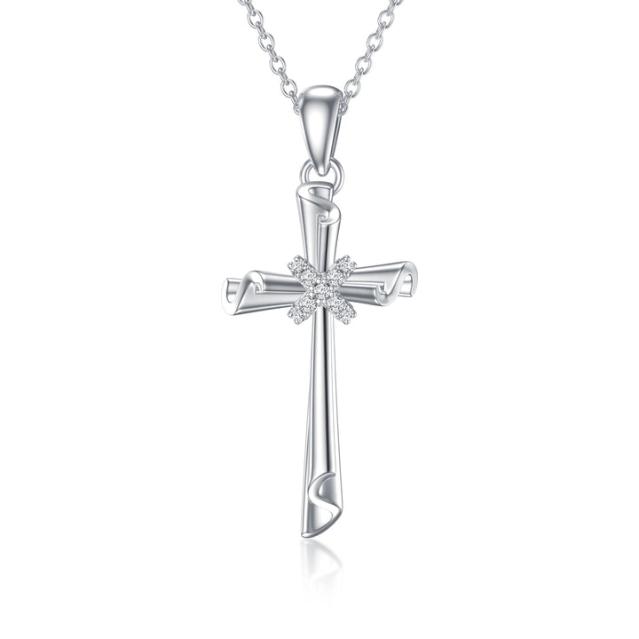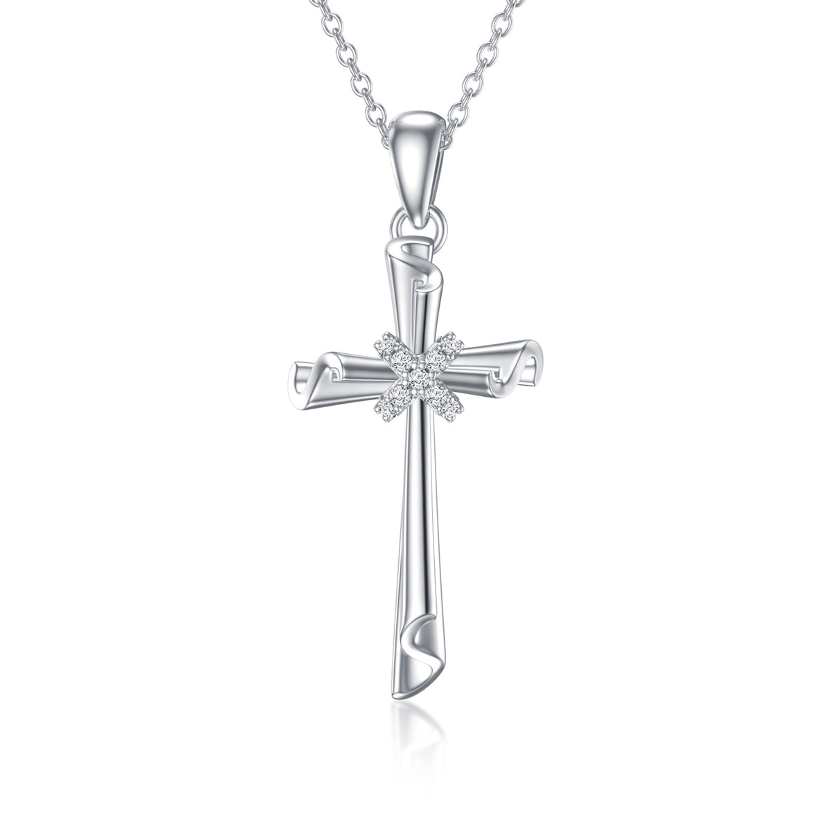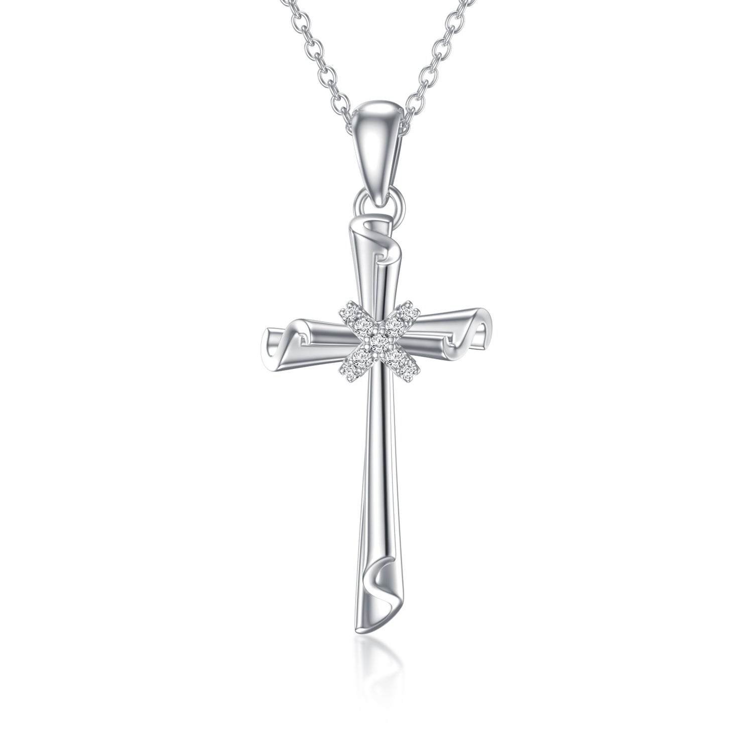 Sterling Silver 5A Grade Austria Zircon Cross Pendant Necklace