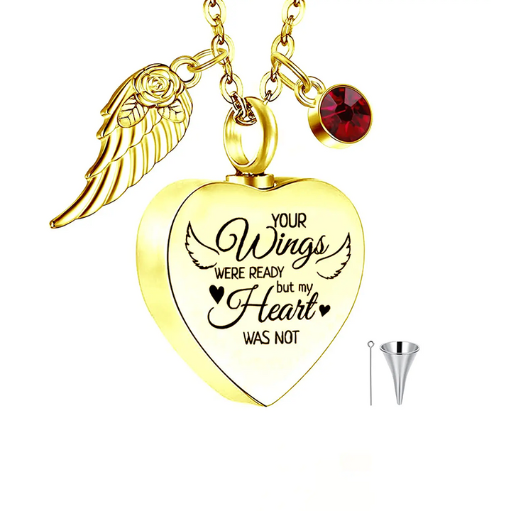 10K Gold Birthstone Angel Wing Heart Personalised Engraving Urn Necklace