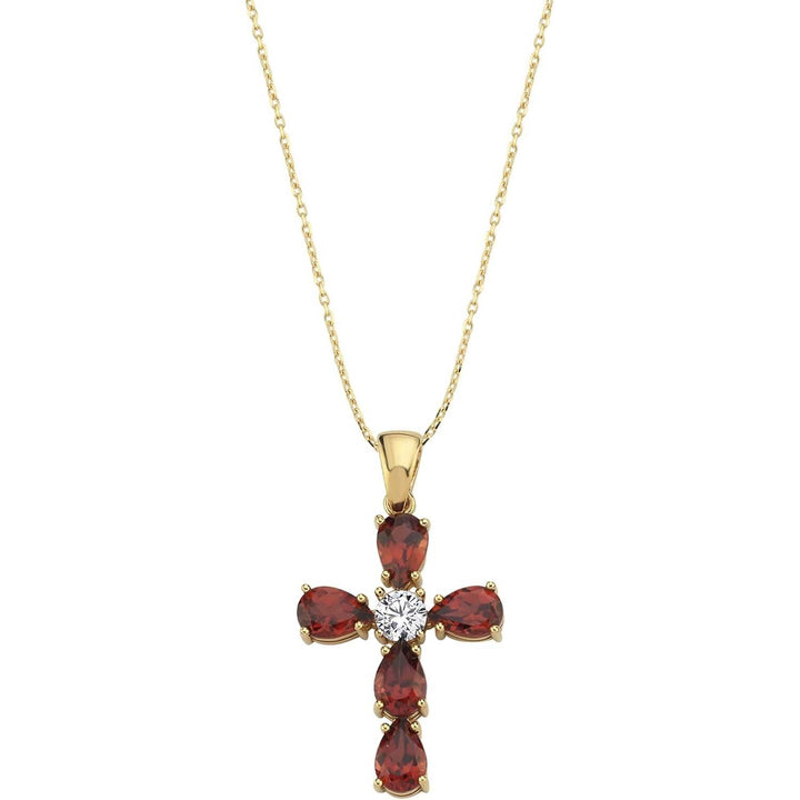 14K Gold Moissanite Ruby Cross Pendant Necklace