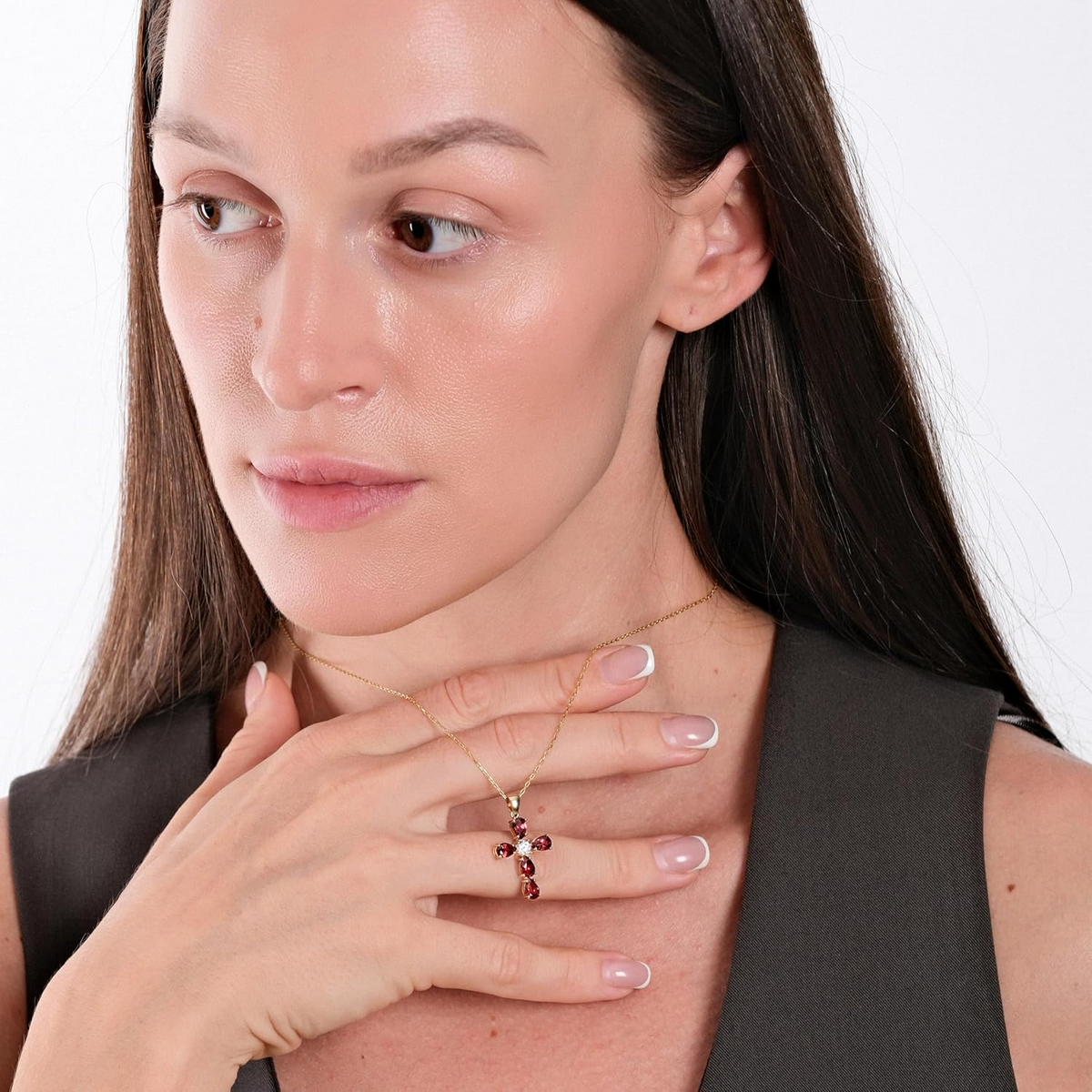 This 14K Gold Moissanite Ruby Cross Pendant Necklace by YFN is a perfect, unisex blend of elegance and spirituality. Crafted from high-quality 14K gold, this exquisite piece showcases a dazzling Moissanite that reflects light beautifully, paired with a rich red Ruby in a timeless cross design. This necklace symbolizes faith and strength, effortlessly complementing any outfit with its sparkle and charm, making it an ideal, versatile addition to any jewelry collection for both men and women.
