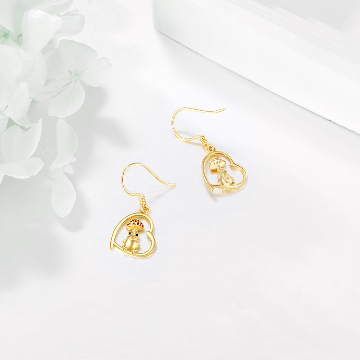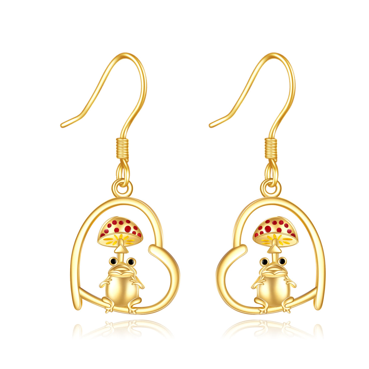 Crafted from solid 14K Gold. These are Drop Earrings featuring a Frog motif (no stones).