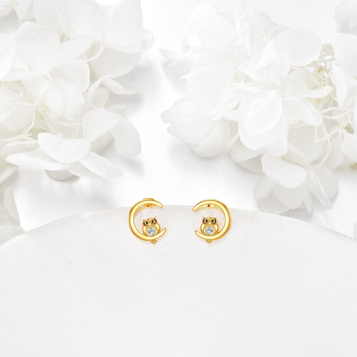 14K Gold Cubic Zirconia Owl Stud Earrings