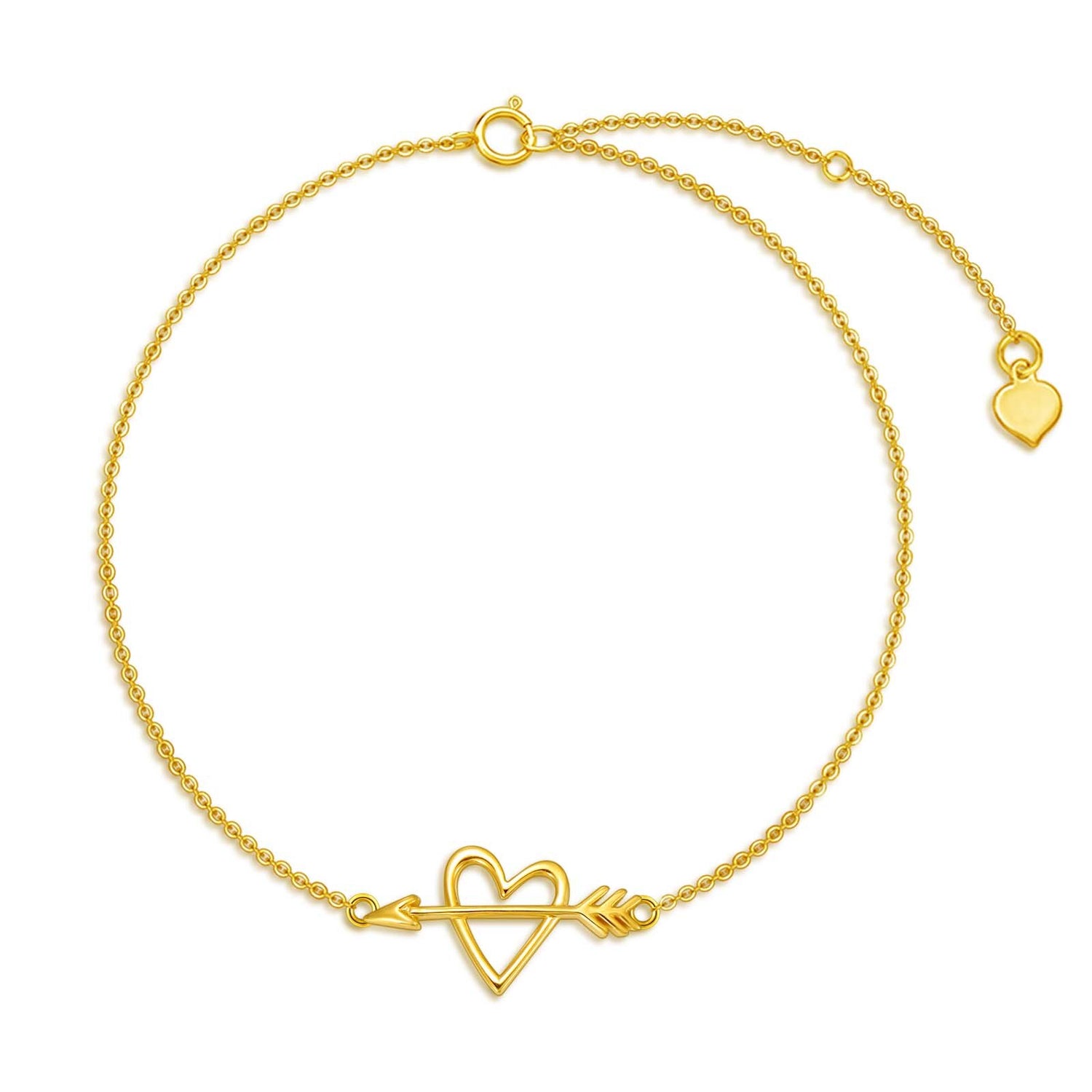This no-stone Women's Charm Bracelet is crafted from Genuine 14K Yellow Gold, featuring an Elegant Arrow and Heart Design.