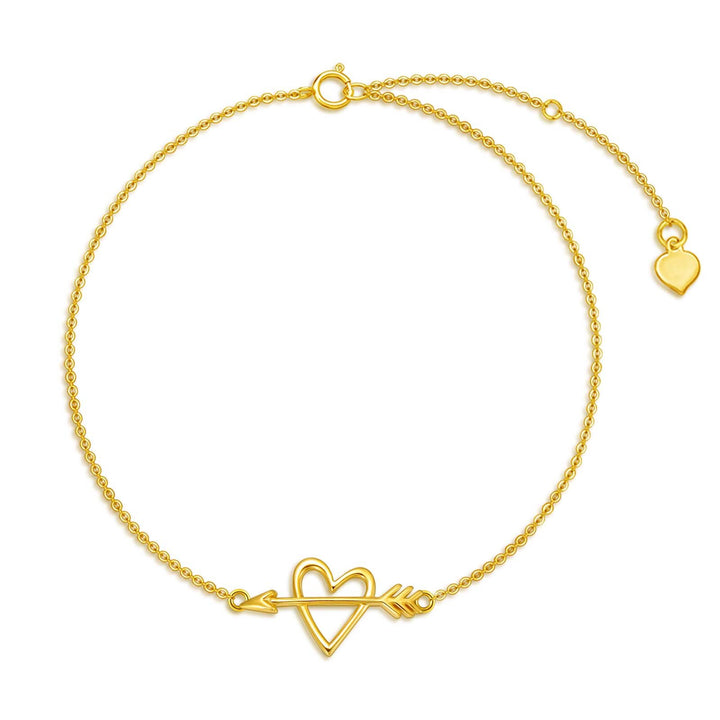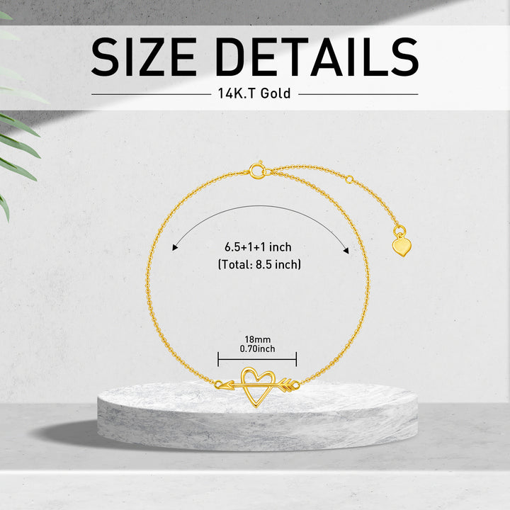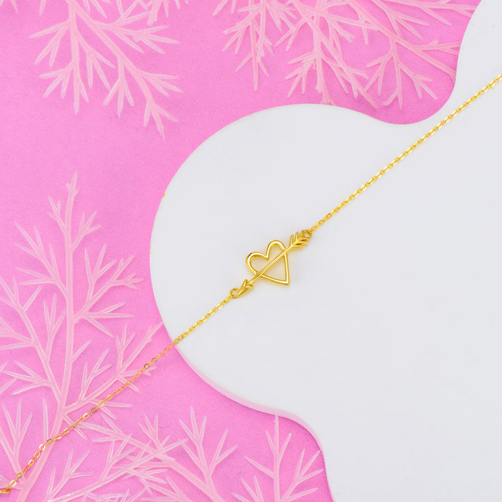 14K Yellow Gold Arrow & Heart Cupid Arrow Bacelet For Women