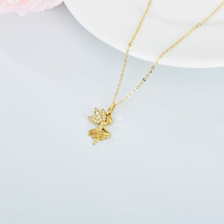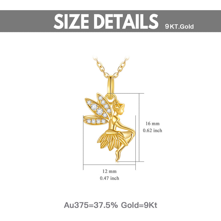 9K Gold Cubic Zirconia Fairy Pendant Necklace