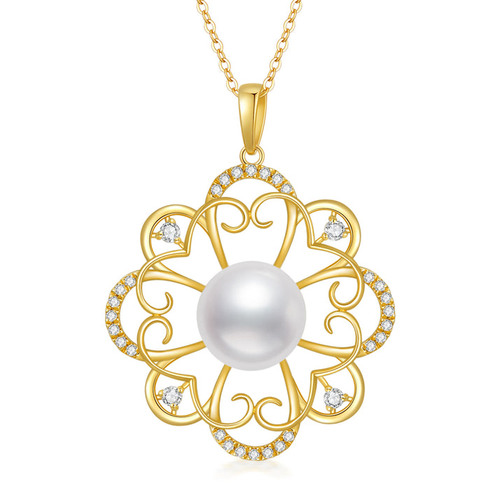 14K Gold Pearl Four-leaf Clover Pendant Necklace
