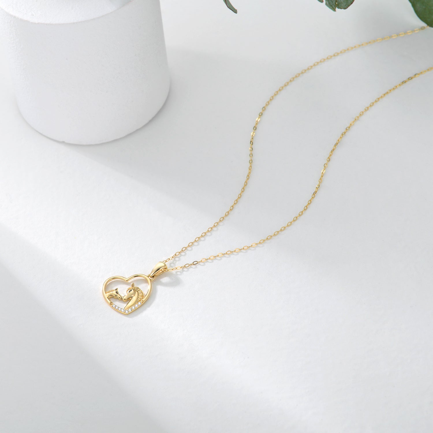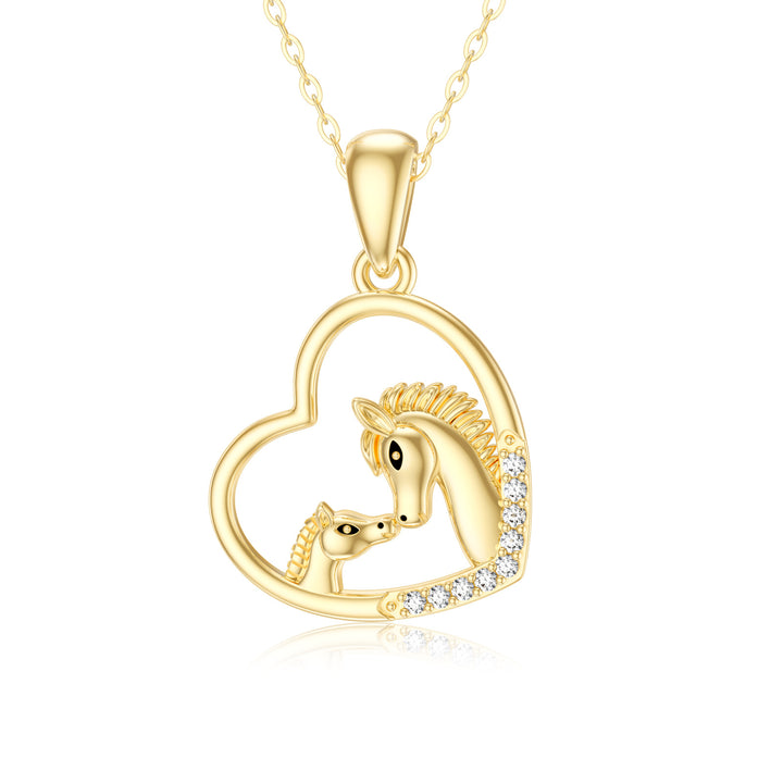 14K Gold Cubic Zirconia Horse & Heart Pendant Necklace