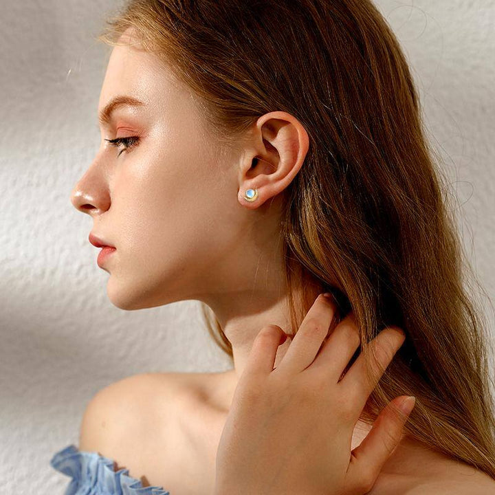 These 14K Gold Moonstone & Opal Moon Stud Earrings by YFN feature a delicate combination of shimmering Moonstone and Opal gemstones, beautifully capturing the celestial charm of the Moon. Crafted from high-quality 14K Gold, these elegant stud earrings illuminate your personal style with timeless beauty and sophistication.