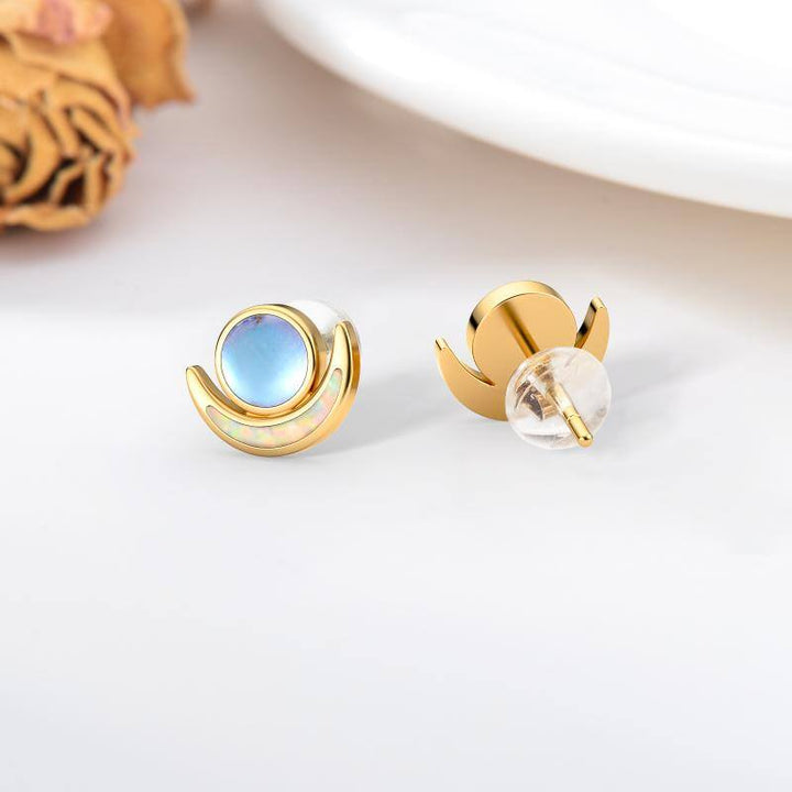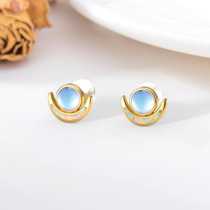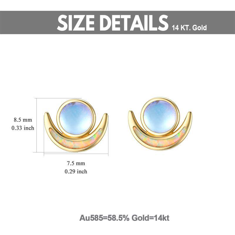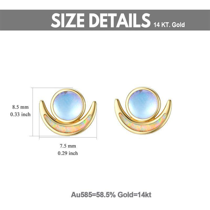 Crafted from high-quality 14K Gold, these Stud Earrings feature Moonstone and Opal gemstones in a Moon design.