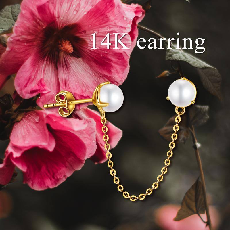 14K Gold Pearl Round Stud Earrings
