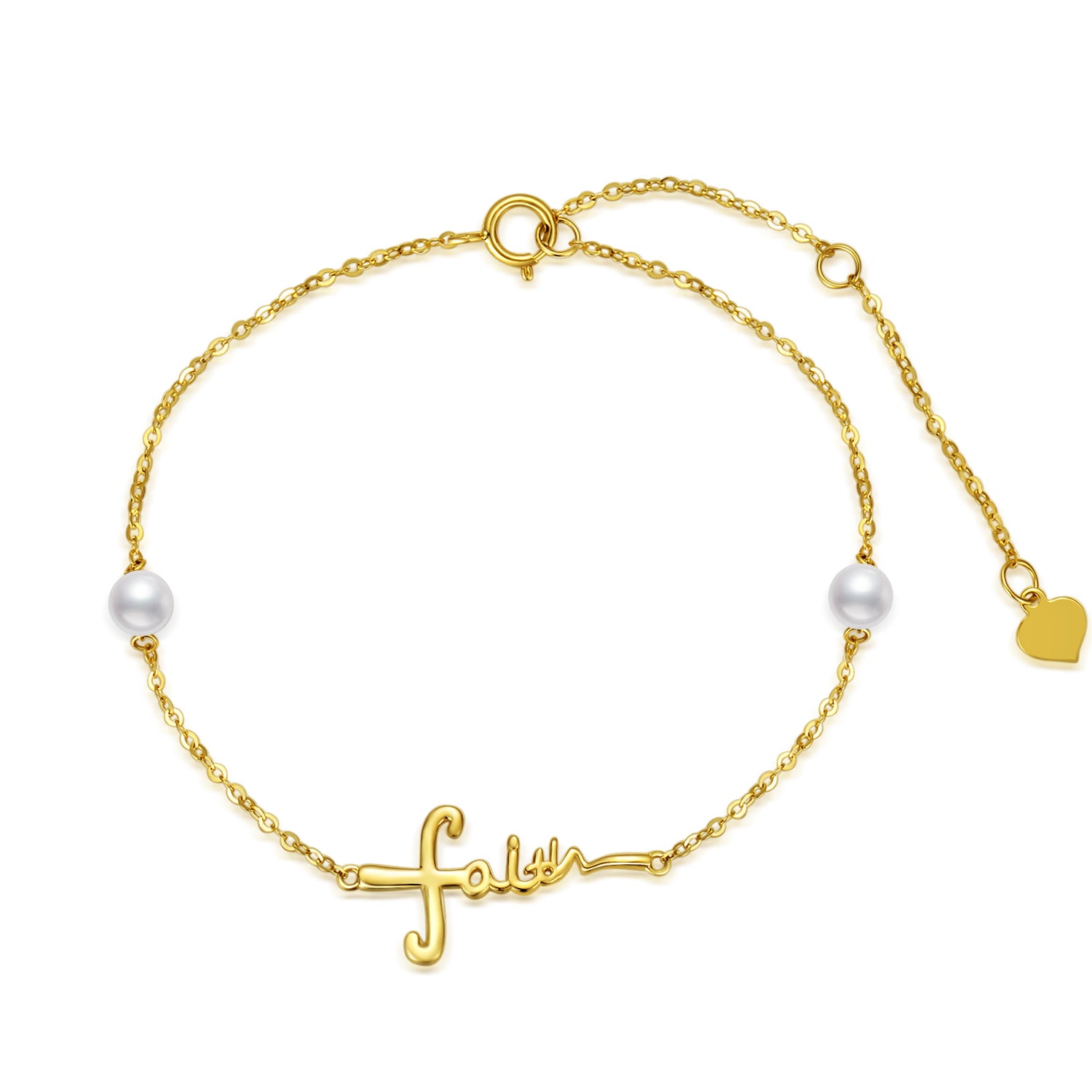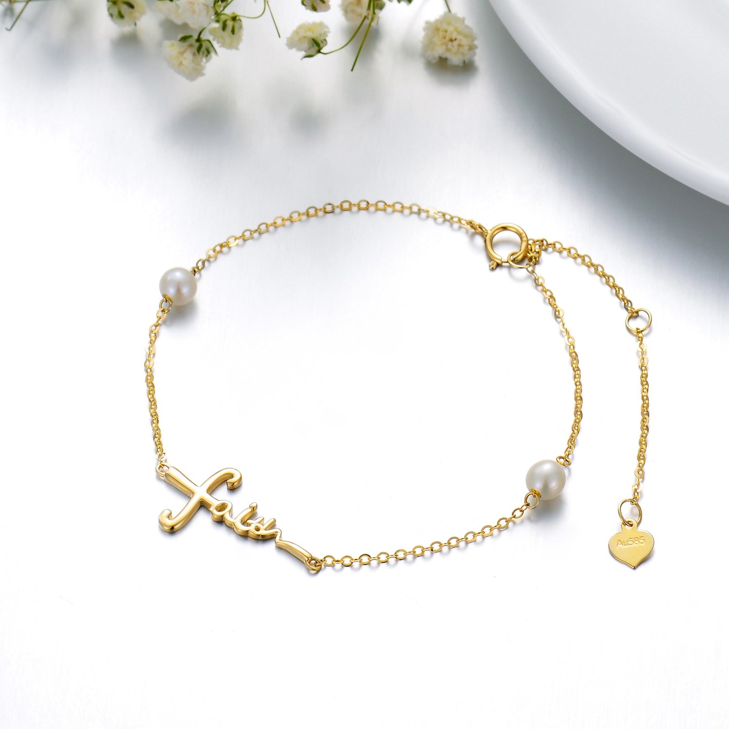14K Gold Pearl Personalized Engraving Bracelet for Women