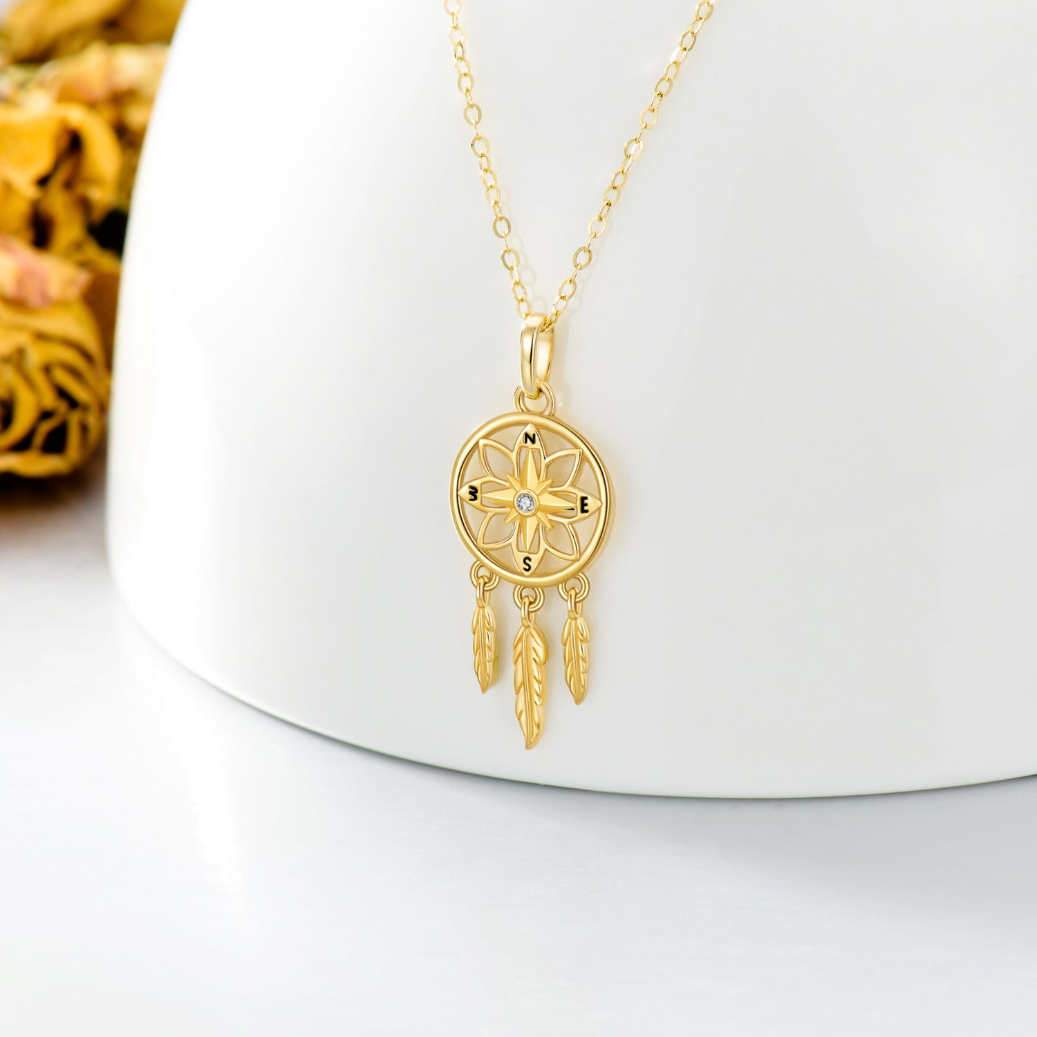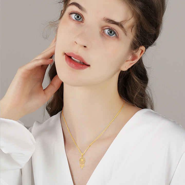 This 14K Gold Cubic Zirconia Dream Catcher Pendant Necklace by YFN merges spiritual symbolism with sparkling elegance. The intricate dream catcher motif is accented with brilliant Cubic Zirconia, catching the light with every movement. Crafted in rich 14K gold, this necklace adds graceful radiance to any look and is perfect for women who love jewelry steeped in meaning and beauty.