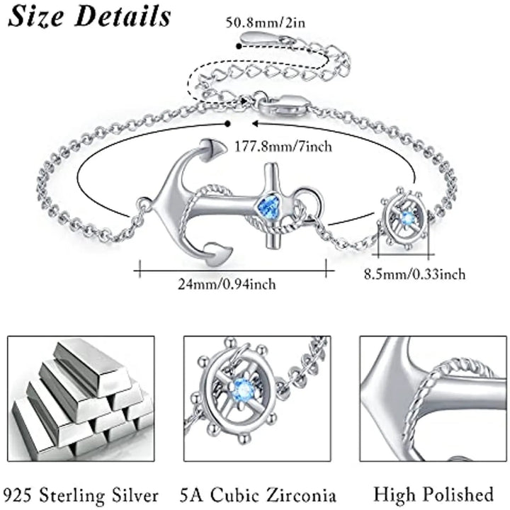 This Sterling Silver Cubic Zirconia Compass & Rudder Charm Bracelet by YFN captures nautical elegance with sparkling cubic zirconia accenting its compass and rudder motifs. Designed for women who love meaningful details, the white gold plated finish adds brilliance, while the maritime symbols evoke guidance, direction, and adventure.
