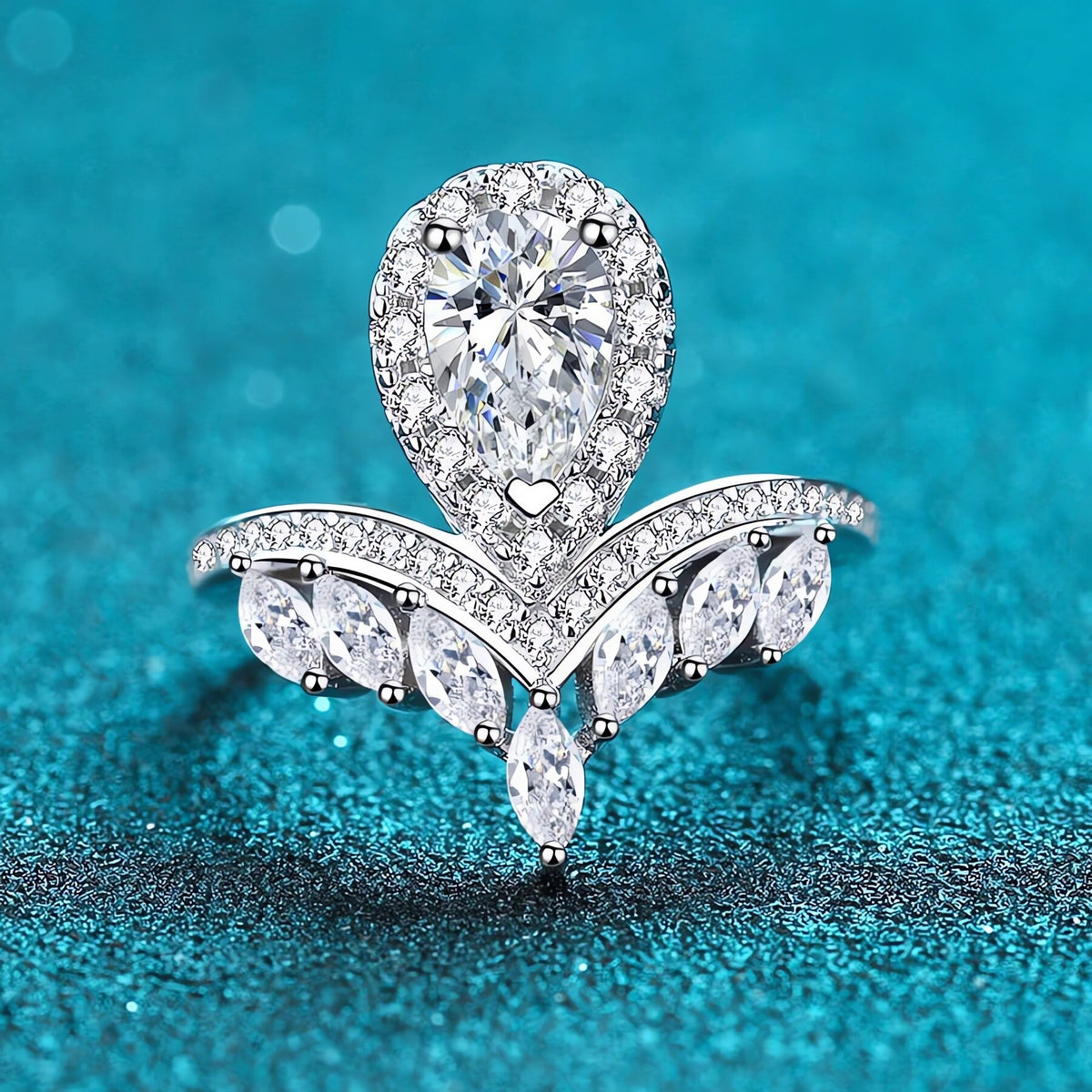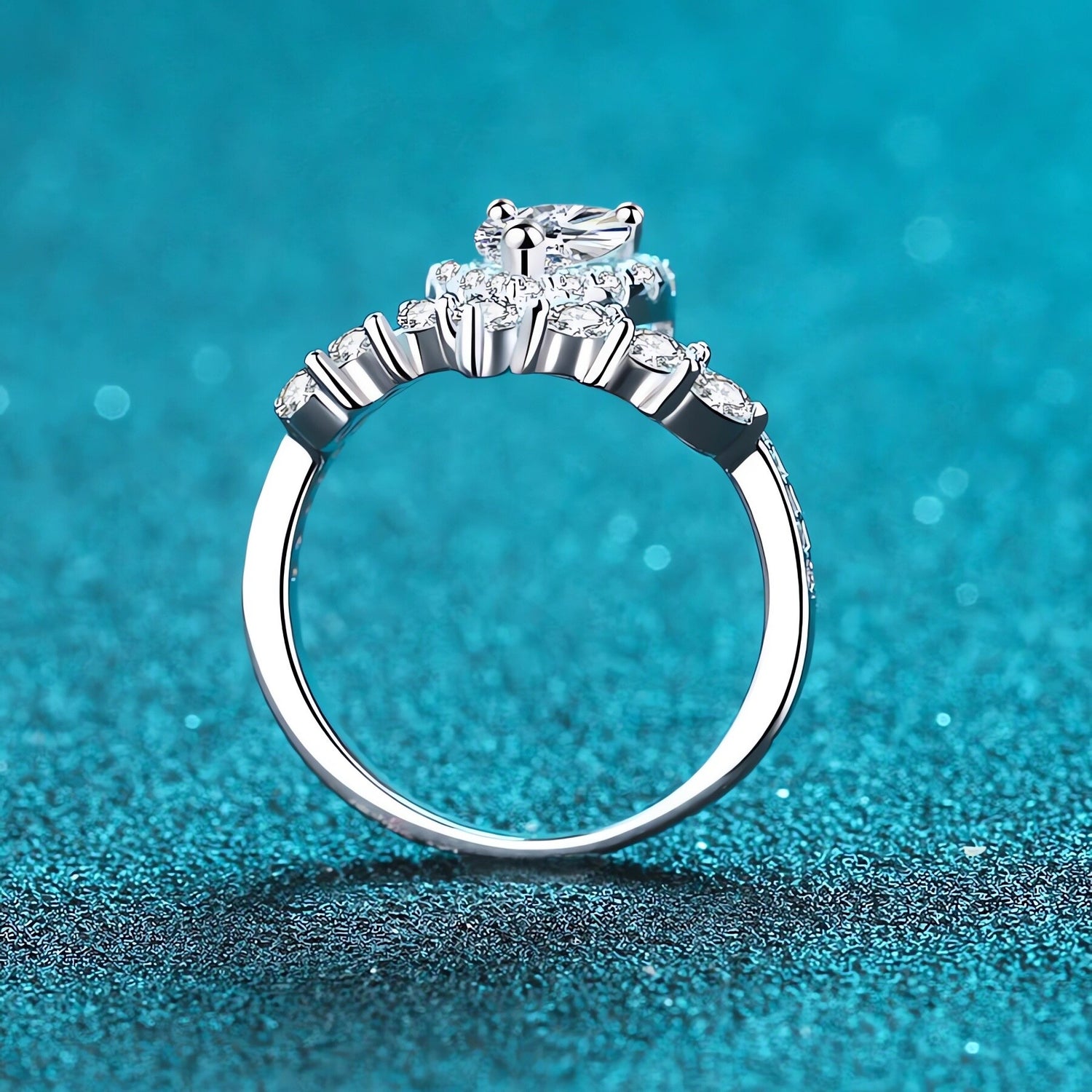 Crafted from 10K White Gold, featuring Moissanite gemstones with D color and VVS1 clarity.