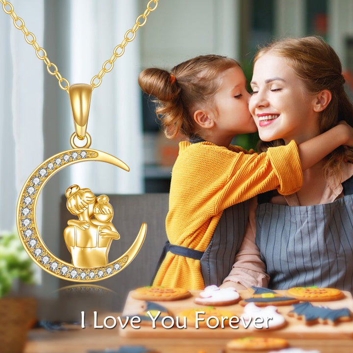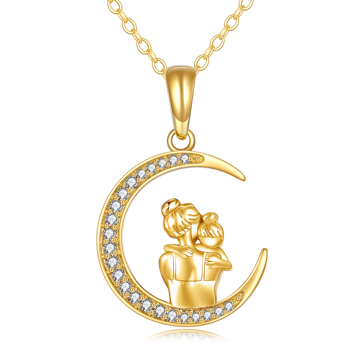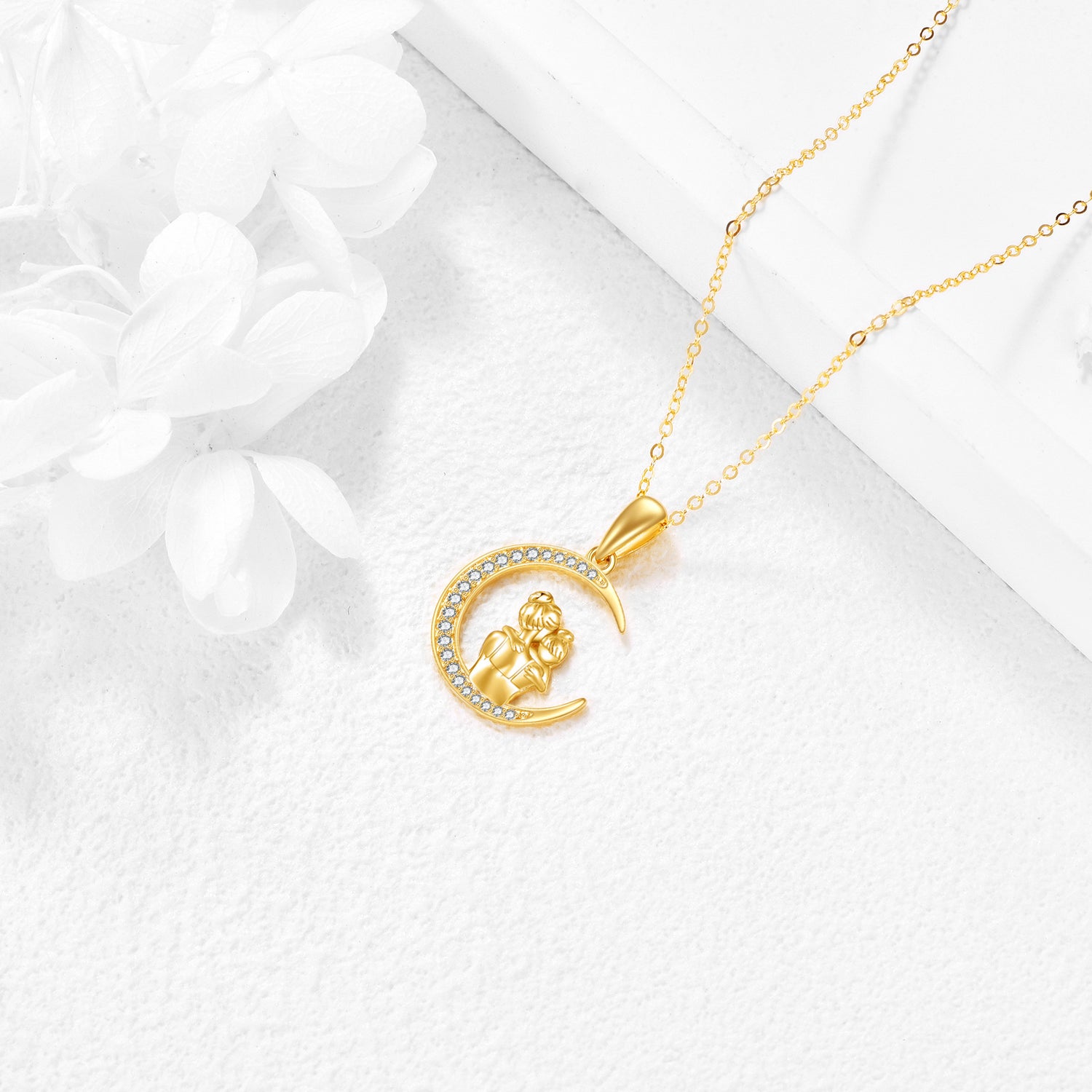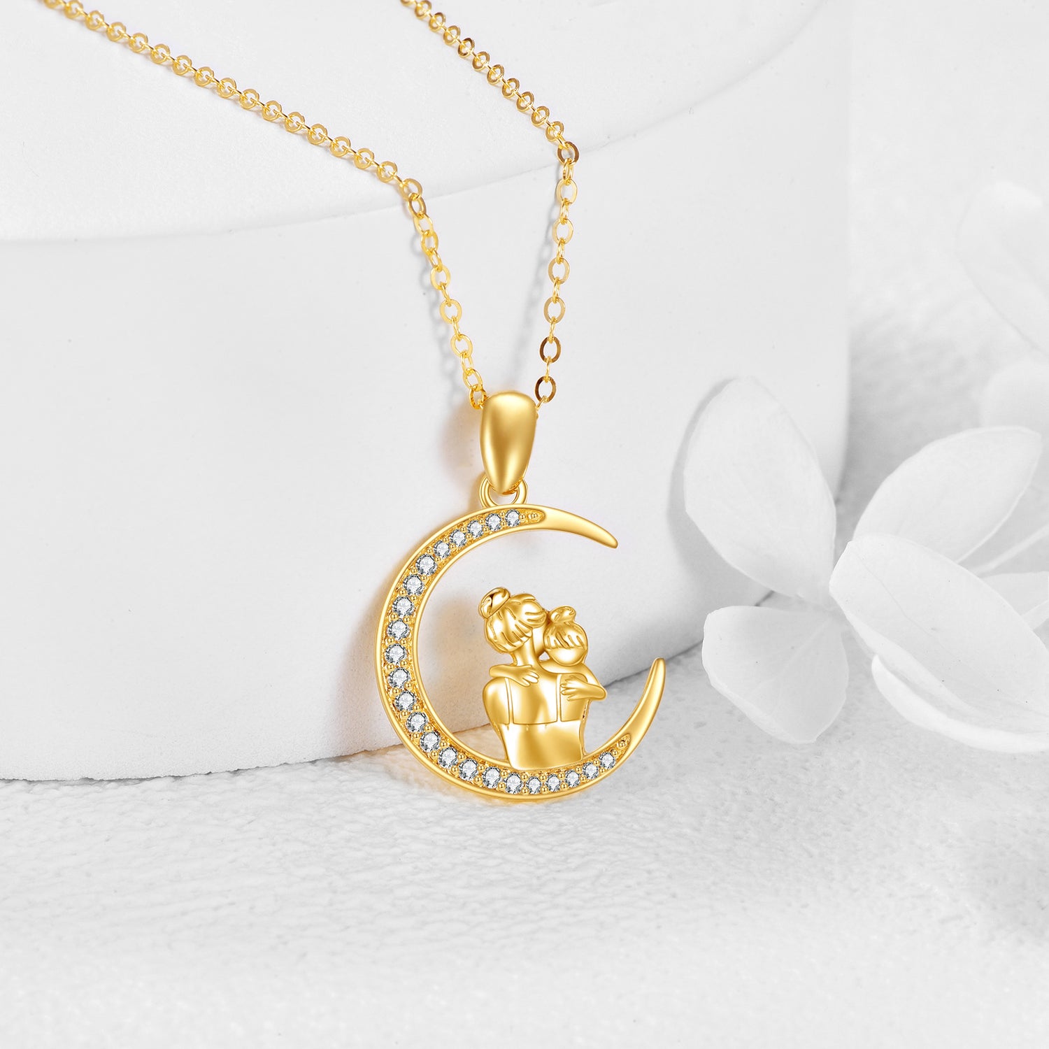9K Gold Cubic Zirconia Mother & Daughter Moon Pendant Necklace