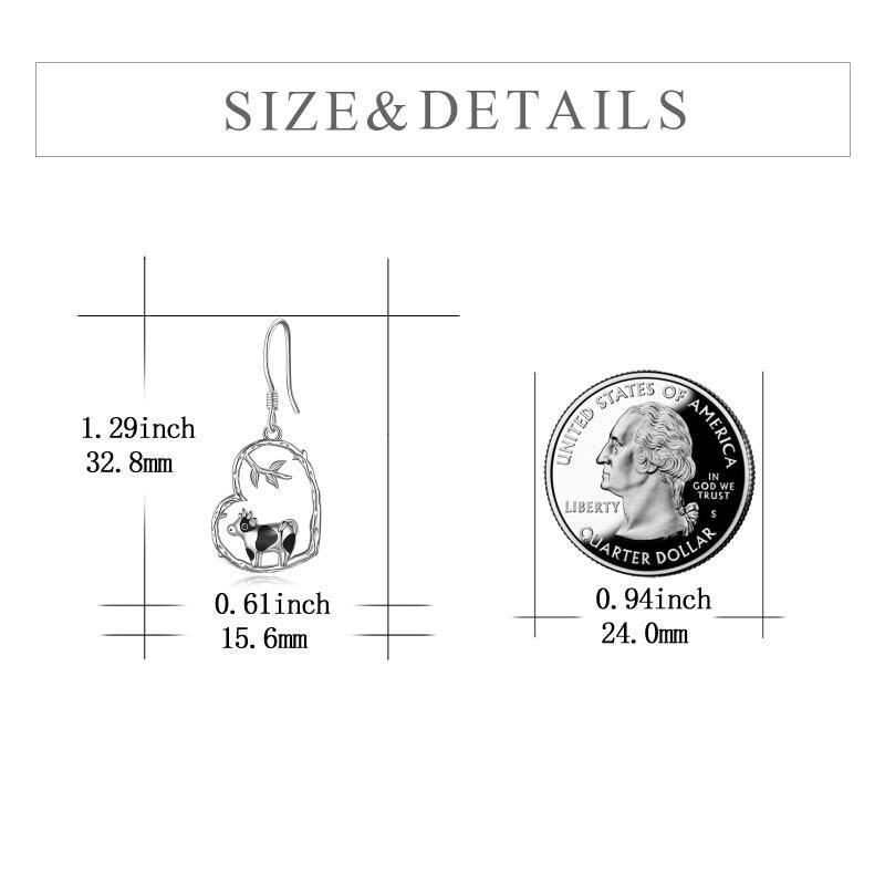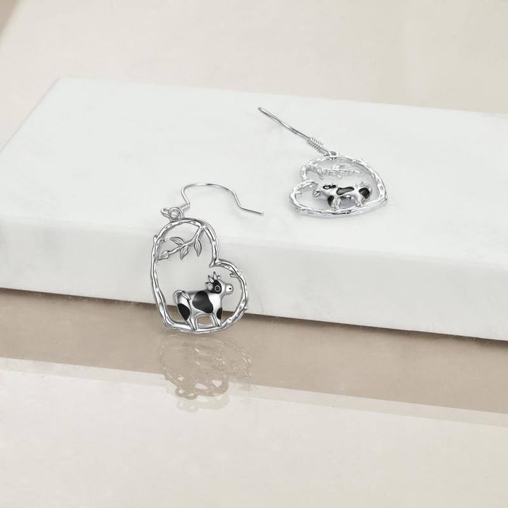 Sterling silver with silver and black finishes; cow and heart motifs; drop earring design.