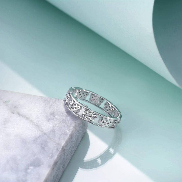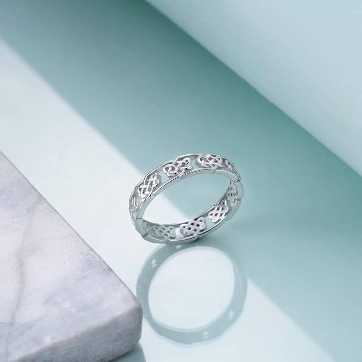 Crafted from high-quality Sterling Silver, this unisex, stone-free Ring showcases the intricate Celtic Knot and is beautifully White Gold Plated.