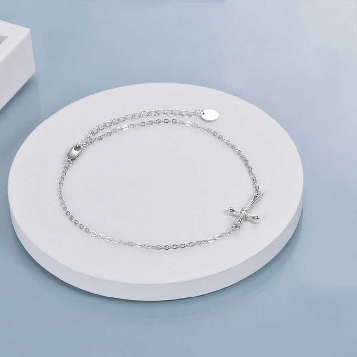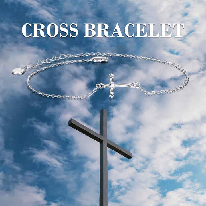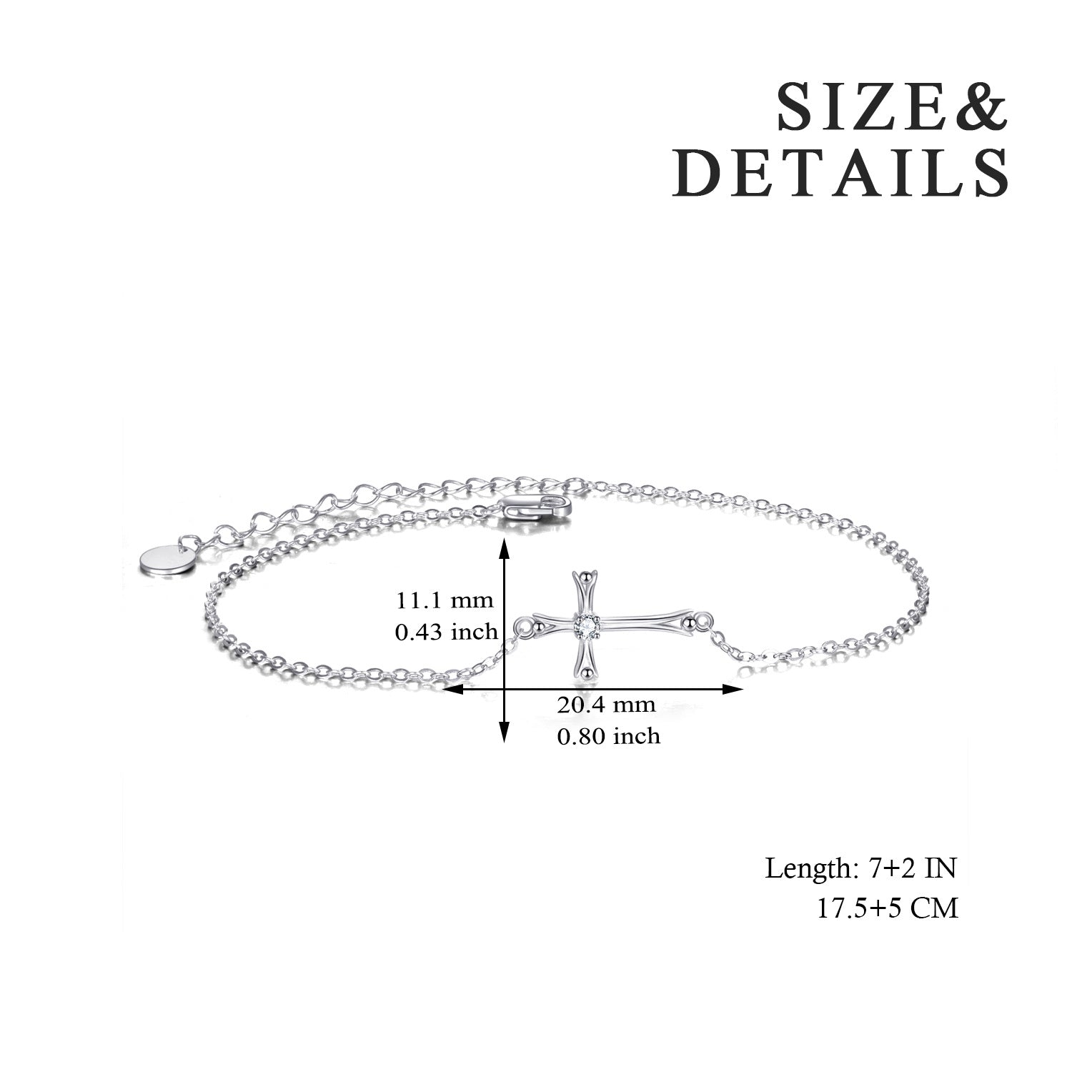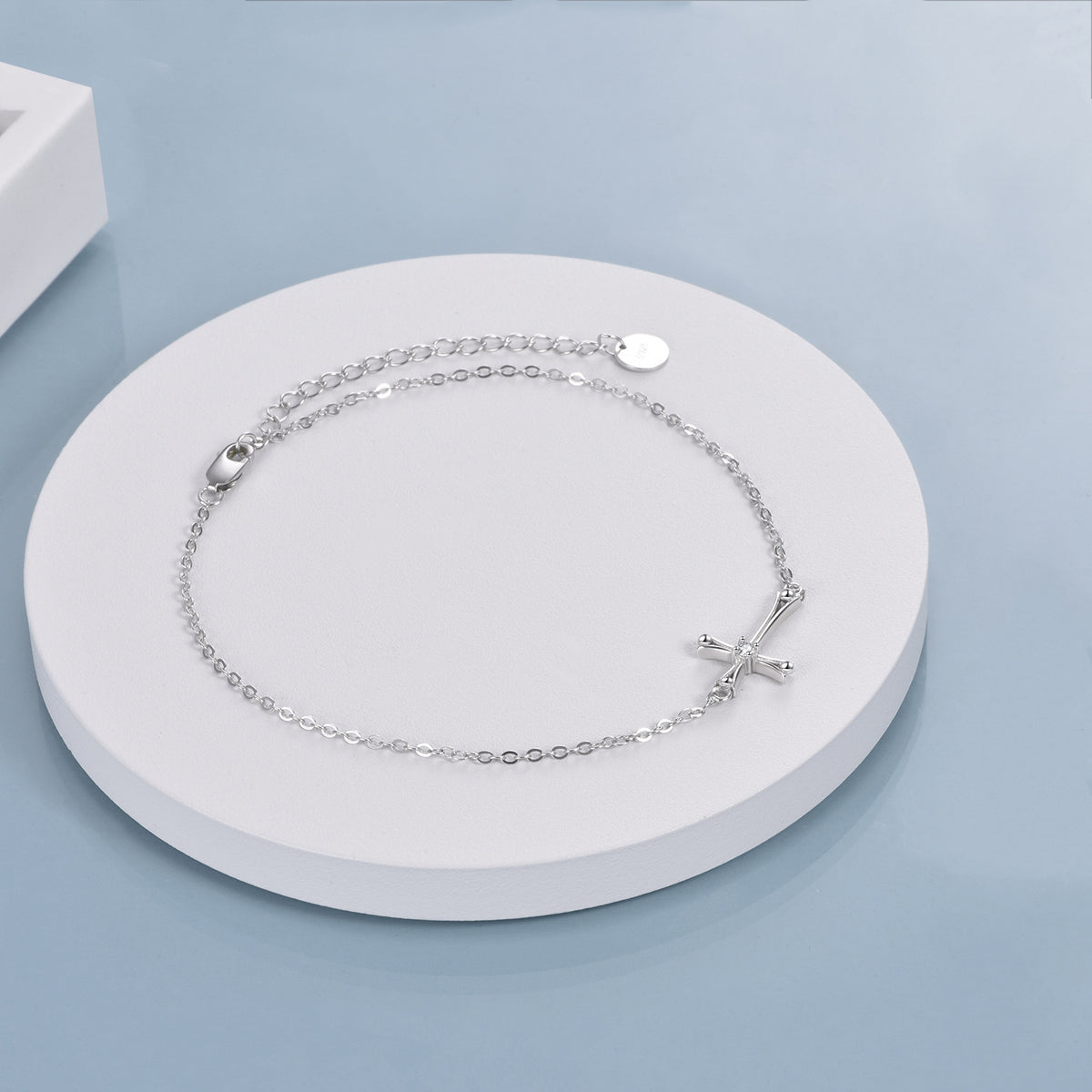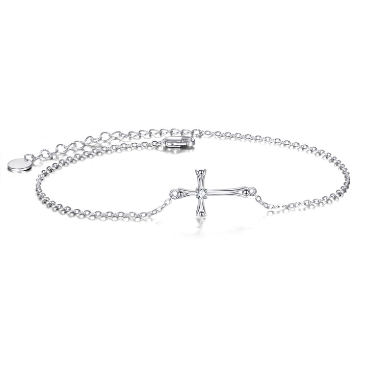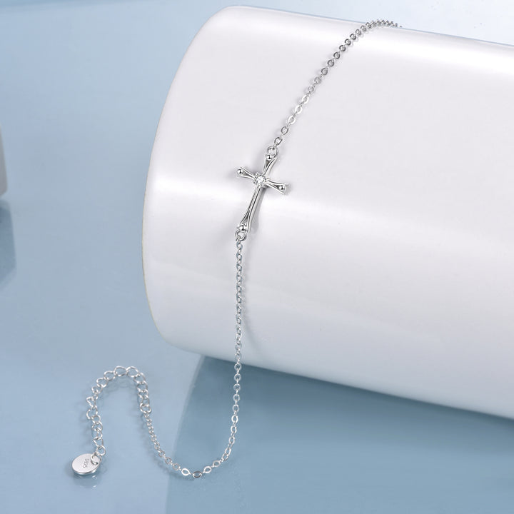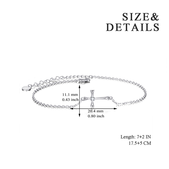 Sterling Silver Round Cubic Zirconia Cross Charm Bracelet