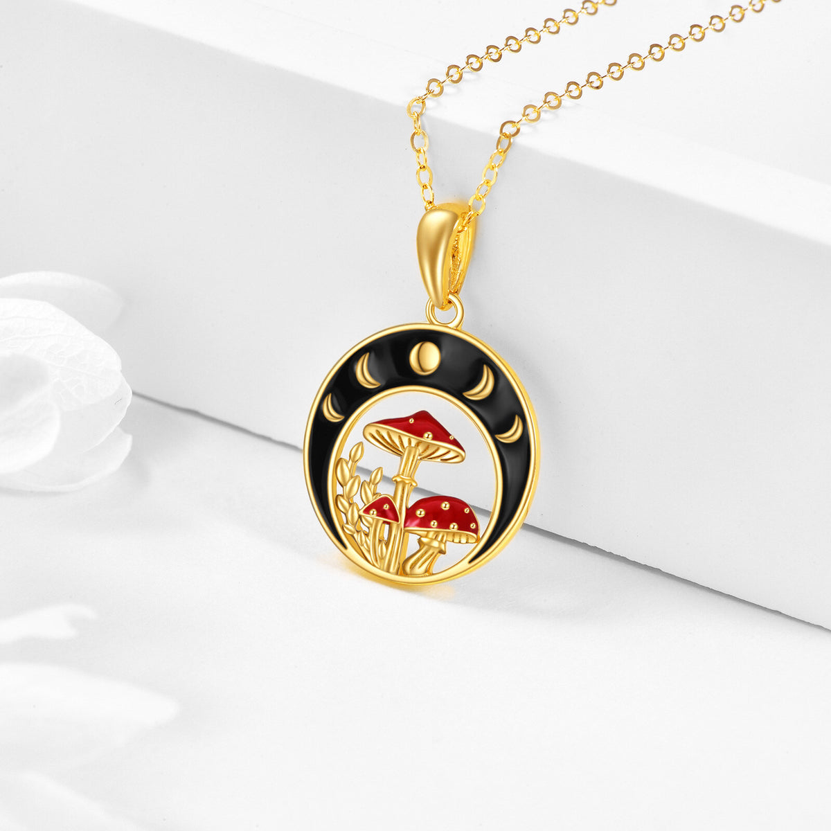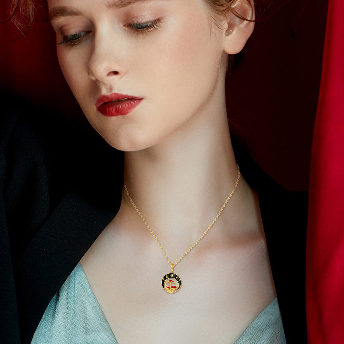 14K Gold Mushroom & Moon With Sun Pendant Necklace For Women
