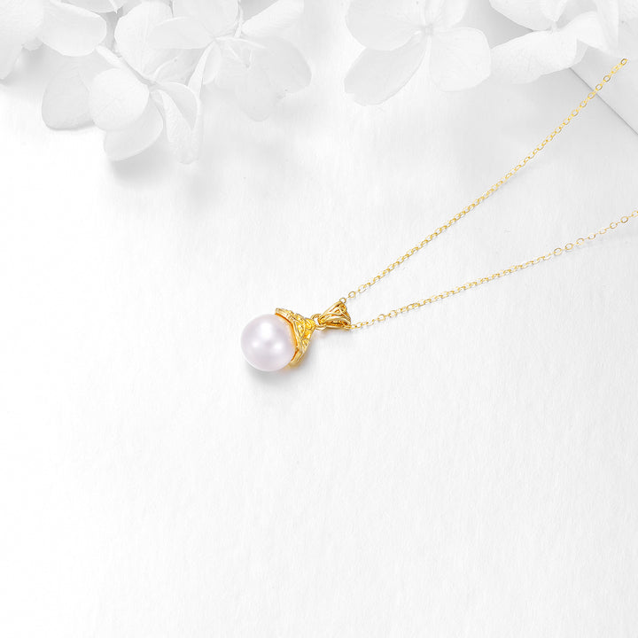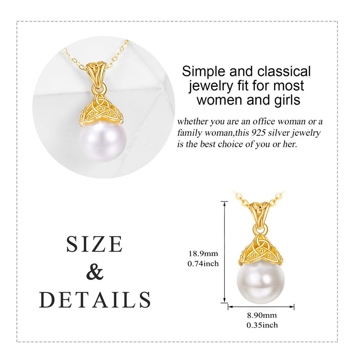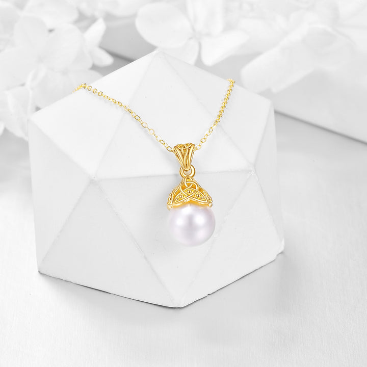 14K Gold Circular Shaped Pearl Celtic Knot Pendant Necklace