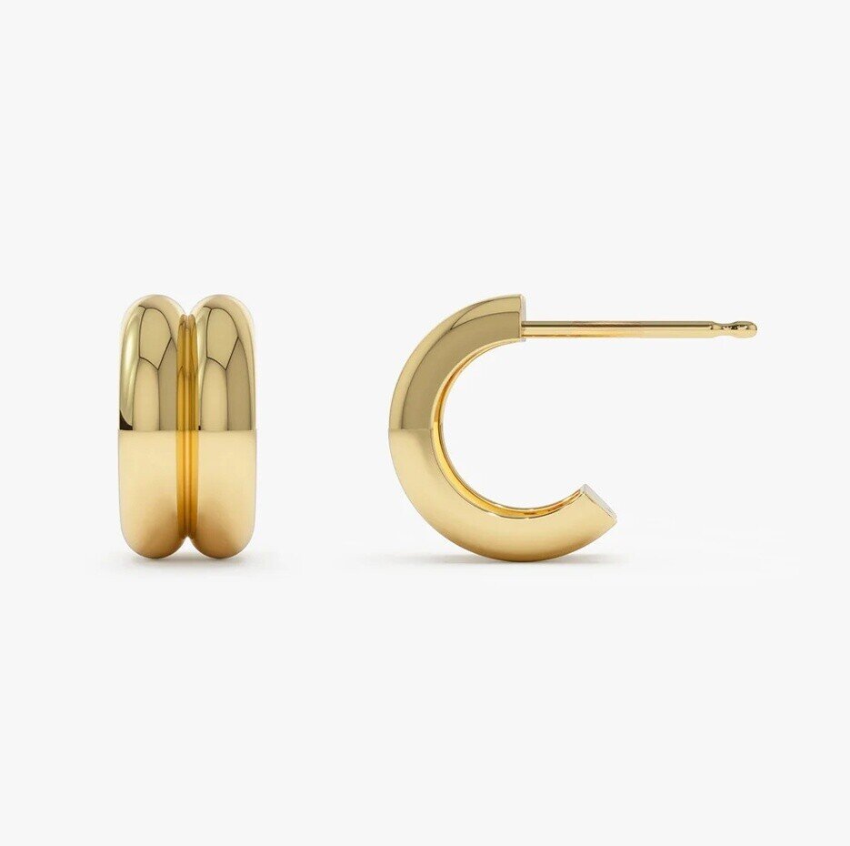 These 14k Solid Gold Twin C Hoops by YFN are stunning hoop earrings designed exclusively for women who appreciate timeless elegance and sophisticated minimalism. Crafted from high-quality 14K gold, the classic circular design, with its sleek silhouette and absence of stones, exudes a luxurious yet understated charm. Their lightweight construction and polished finish ensure all-day comfort and brilliance, making them an essential, versatile accessory for any occasion.
