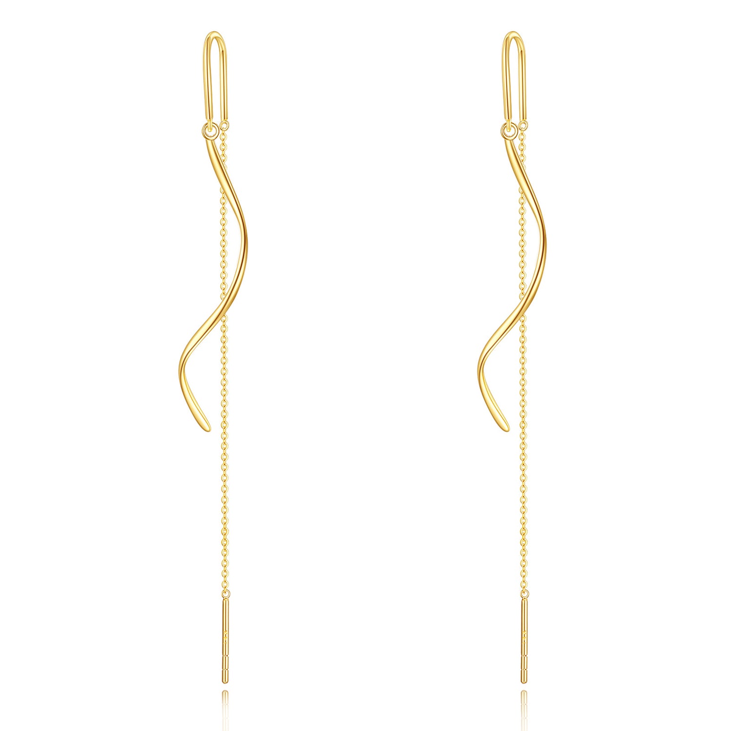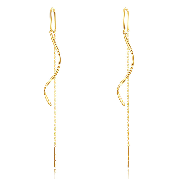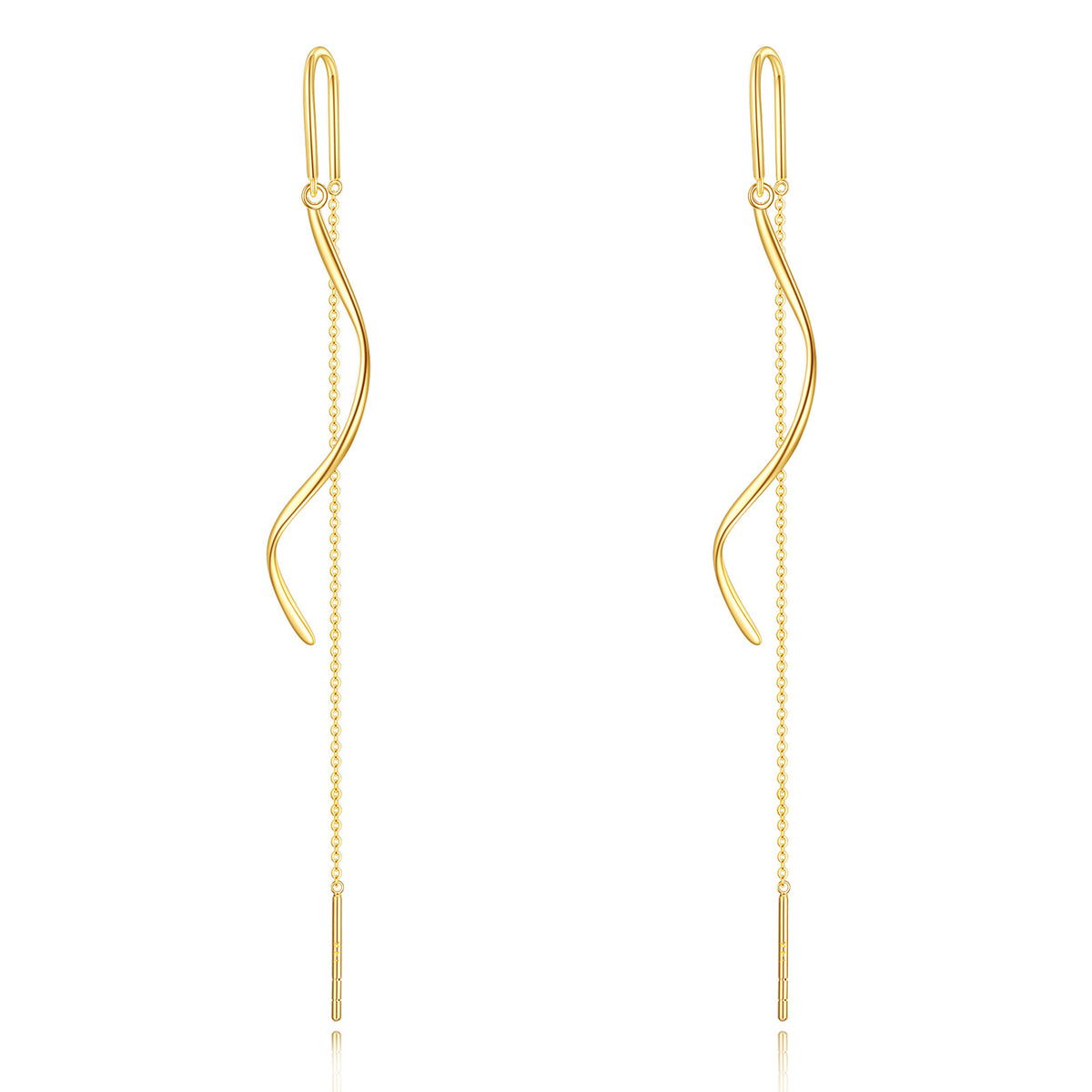 10K Yellow Gold Pull Through Threader Tassel Drop Earrings