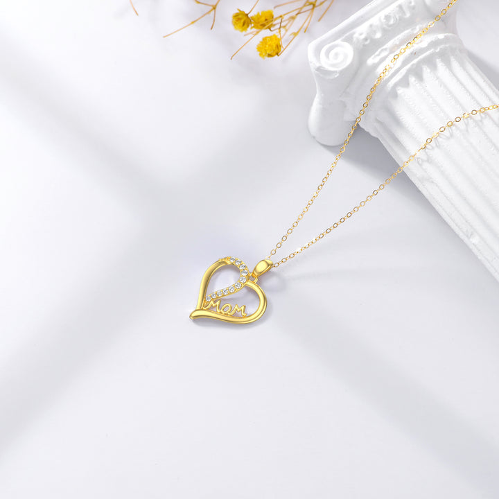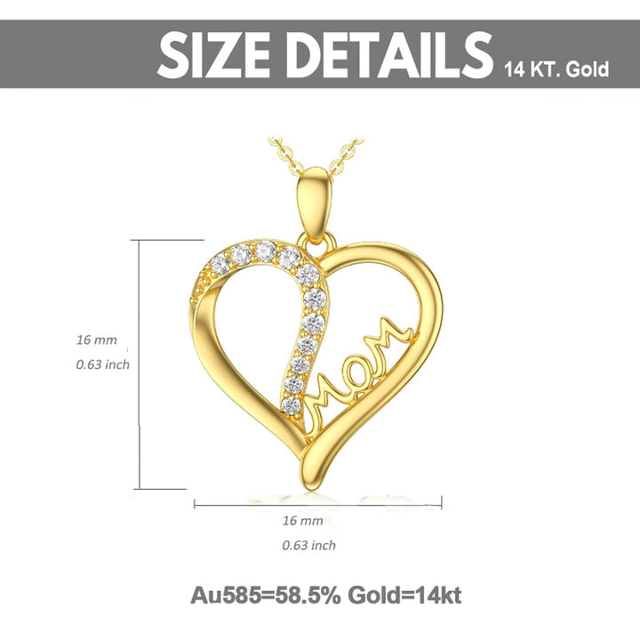 14K Gold Circular Shaped Cubic Zirconia Heart Pendant Necklace with Engraved Word