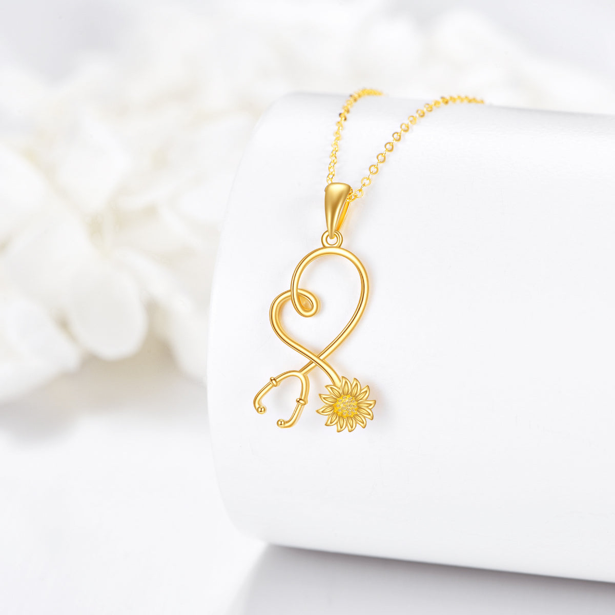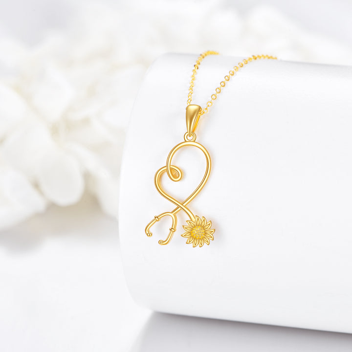 14K Gold Sunflower & Stethoscope Pendant Necklace