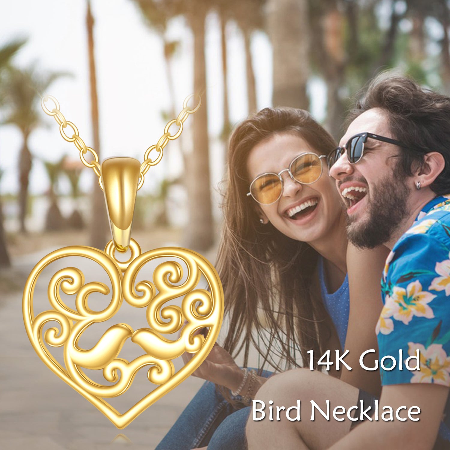 This 14K Gold Bird Ivy Heart Necklace by YFN is a masterpiece designed for women who appreciate timeless elegance and profound symbolism. This intricately crafted Pendant Necklace features a graceful blend of Bird, Ivy, and Heart Motifs, representing freedom, growth, and love. The no-stone design allows the artistry of the 14K Gold craftsmanship to shine, making it a versatile piece that signifies the wearer's elegance and strength, transitioning effortlessly from day to night.