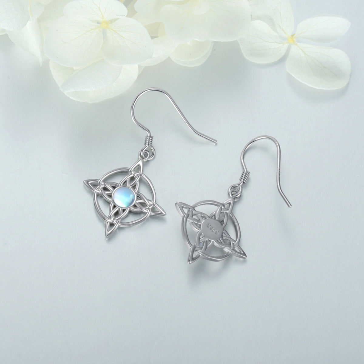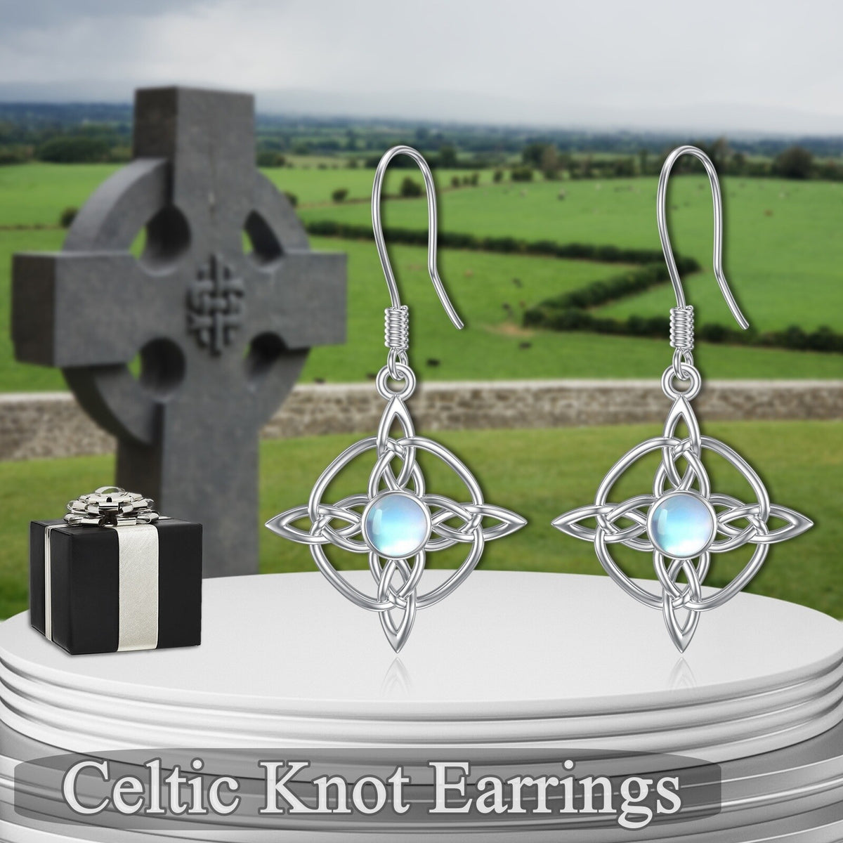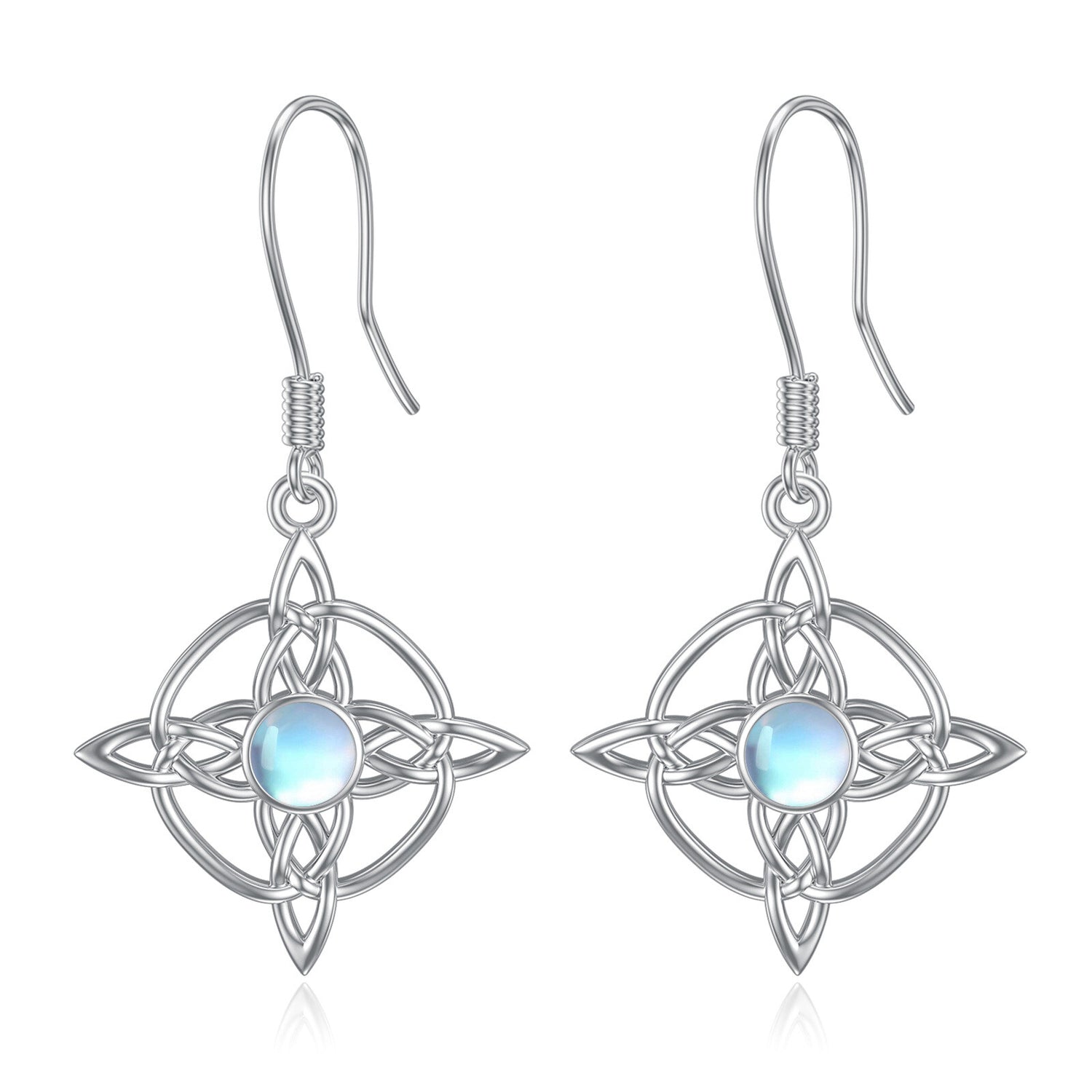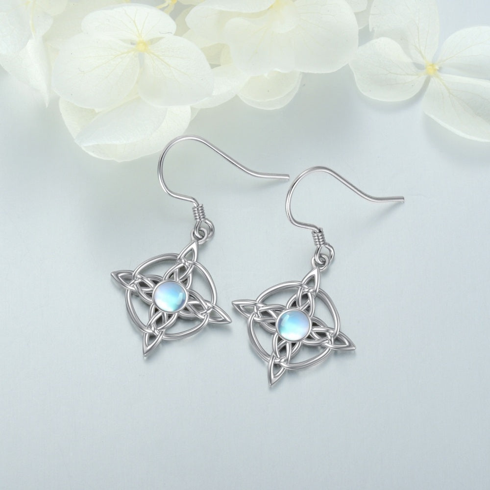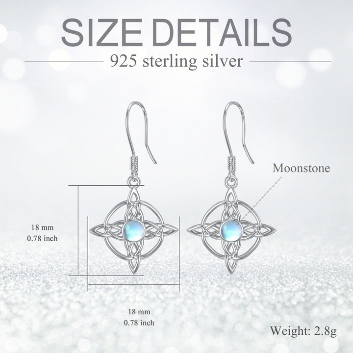 Sterling Silver Circular Shaped Moonstone Celtic Knot & Cross Drop Earrings