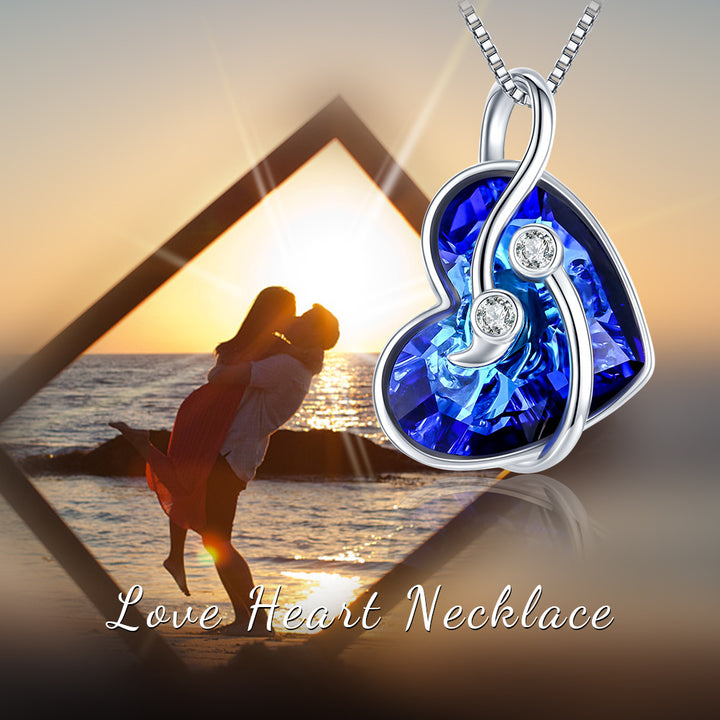 Sterling Silver Semicolon Perotect Heart Blue Crystal Necklace