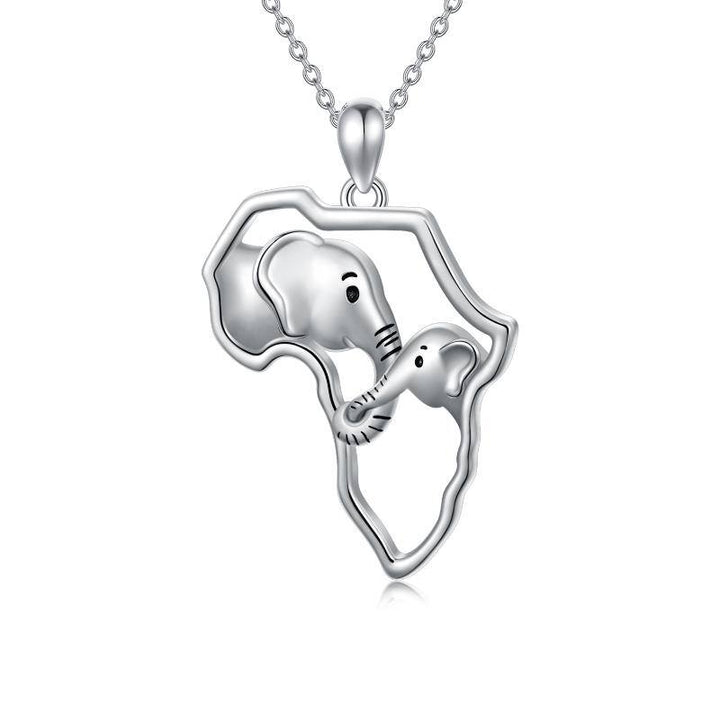 Crafted from 925 Sterling Silver, this necklace features two separate charm pendants: an African Map outline and an Elephant motif.