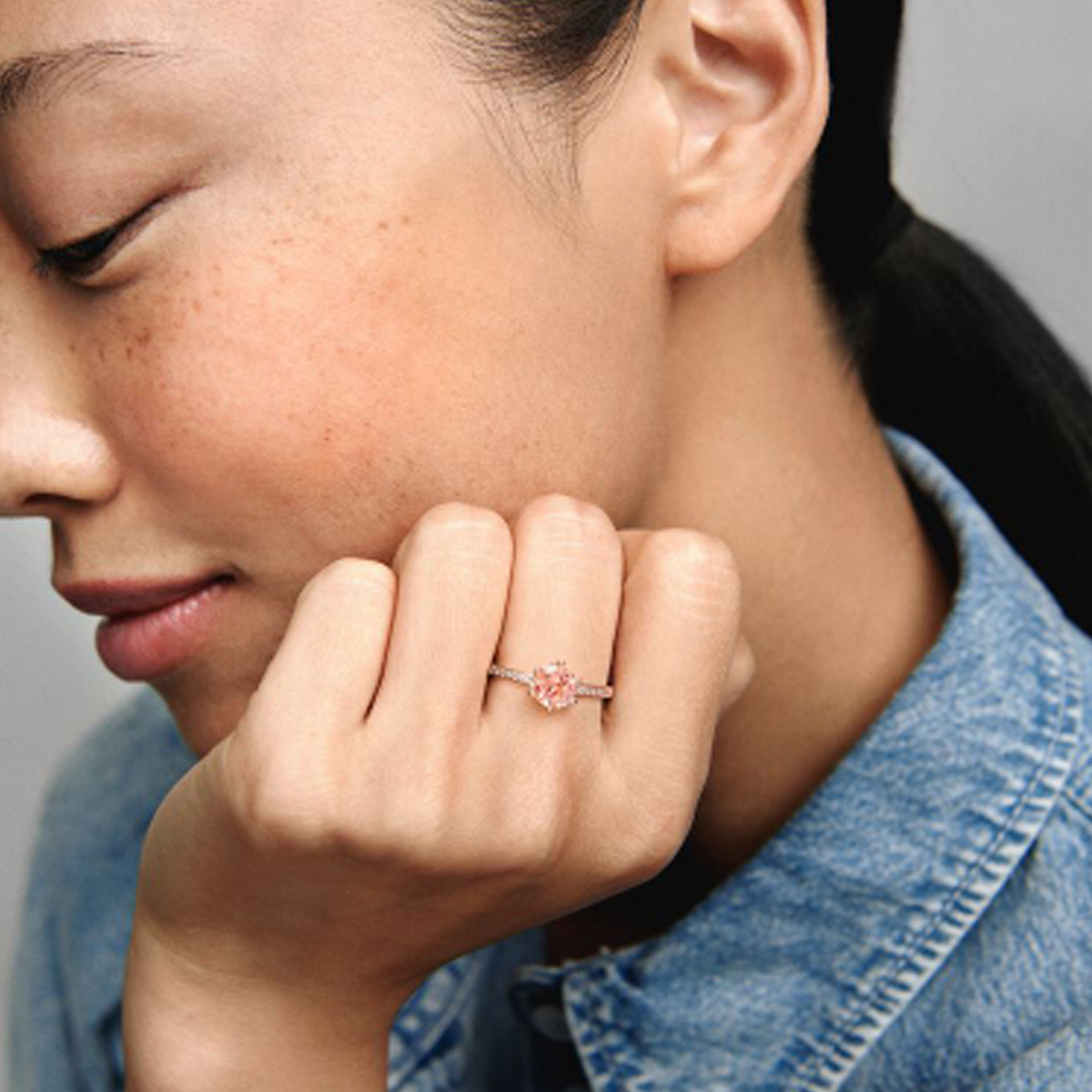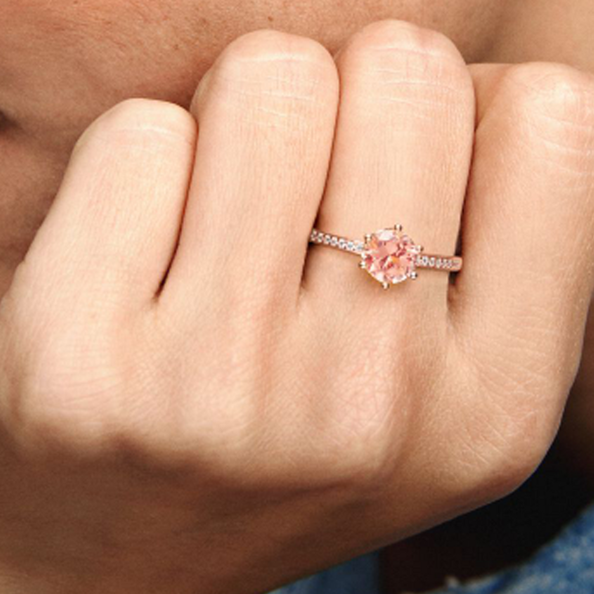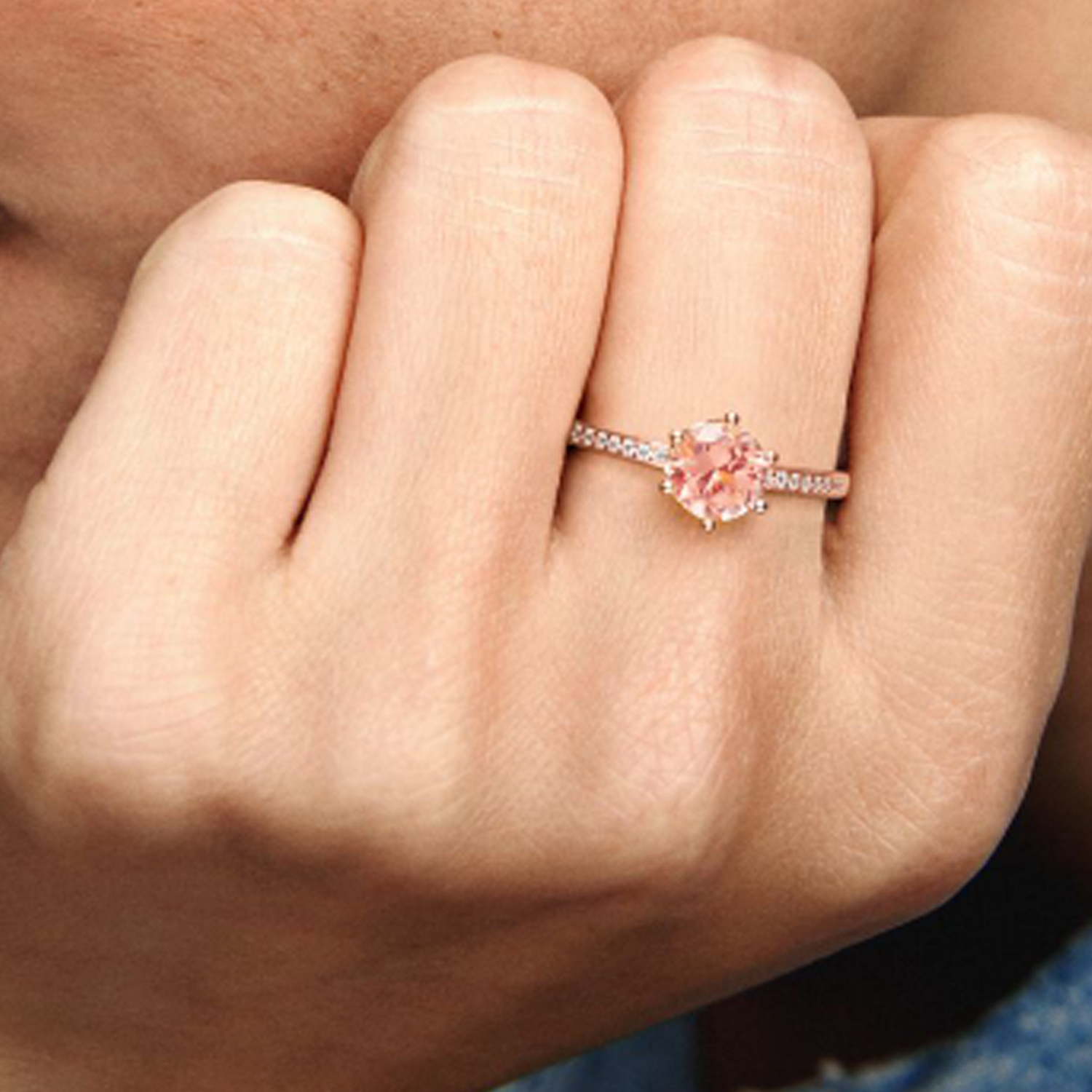 14K Rose Gold Crystal Personalized Engraving Ring for Women