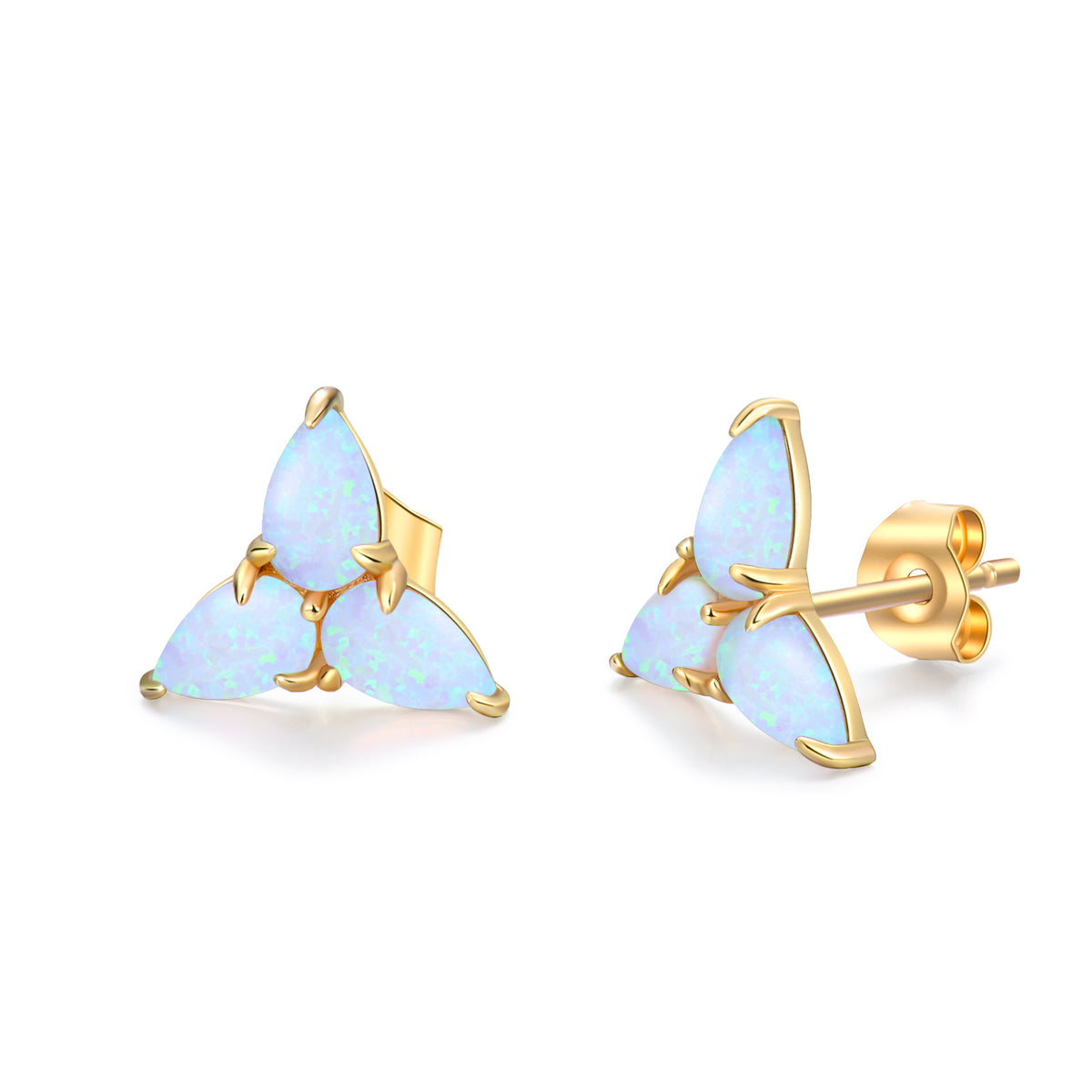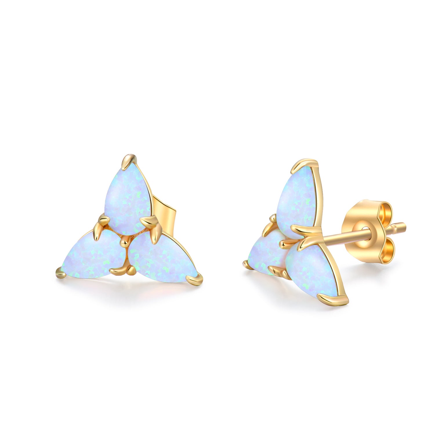 These 14K Gold Opal Triangle Stud Earrings offer a unique blend of elegance and modern design. Each stud features a beautifully radiant Opal cut into a trendy Triangle shape, perfectly set in 14K Gold. The opal's iridescent shine makes these earrings versatile for any occasion, from casual to formal.
