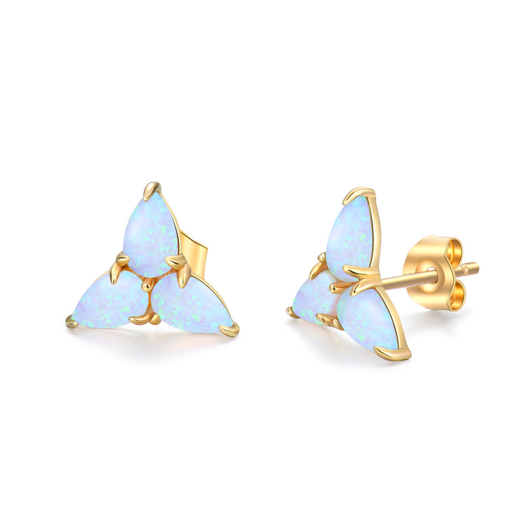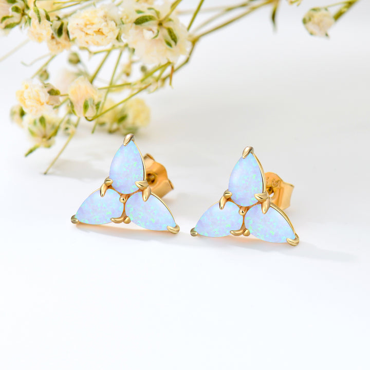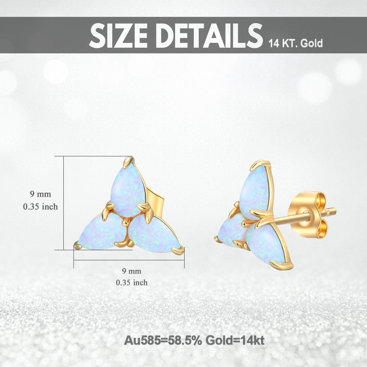 Crafted from 14K Gold, these Stud Earrings feature genuine Opals cut into a Triangle shape.